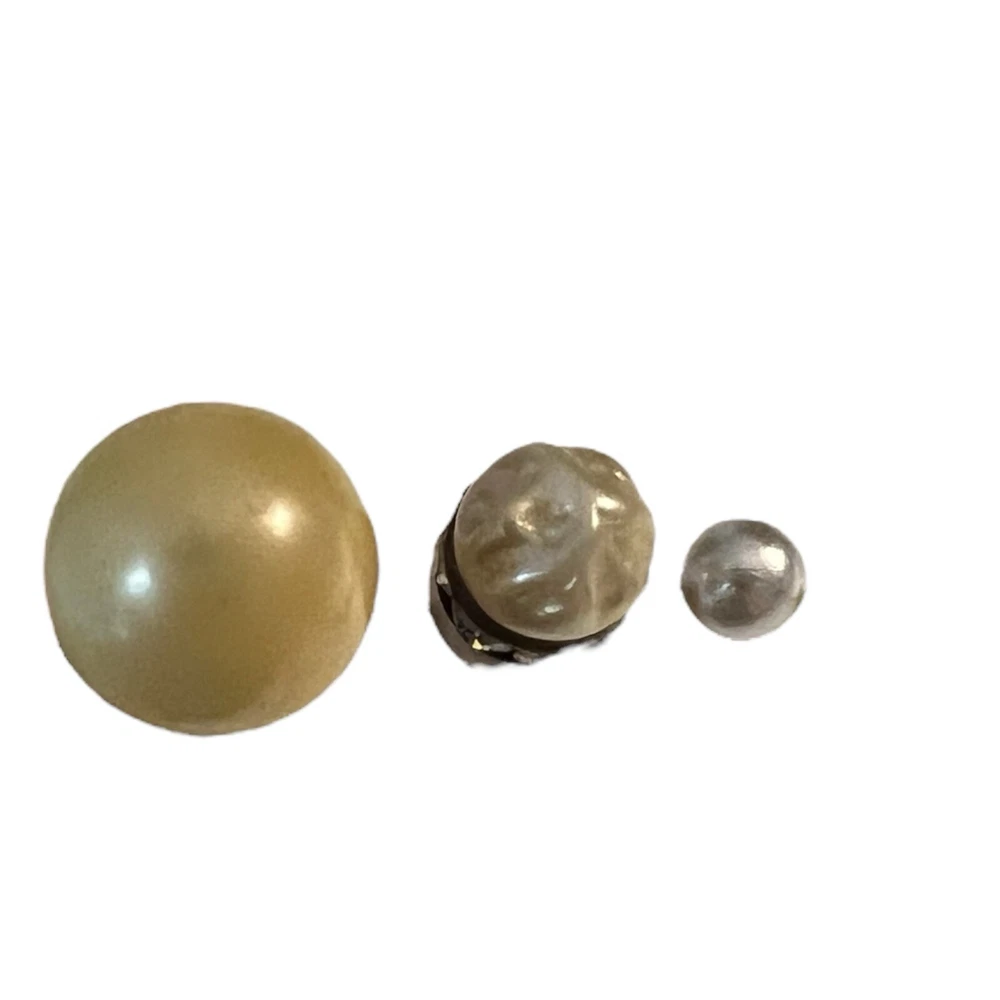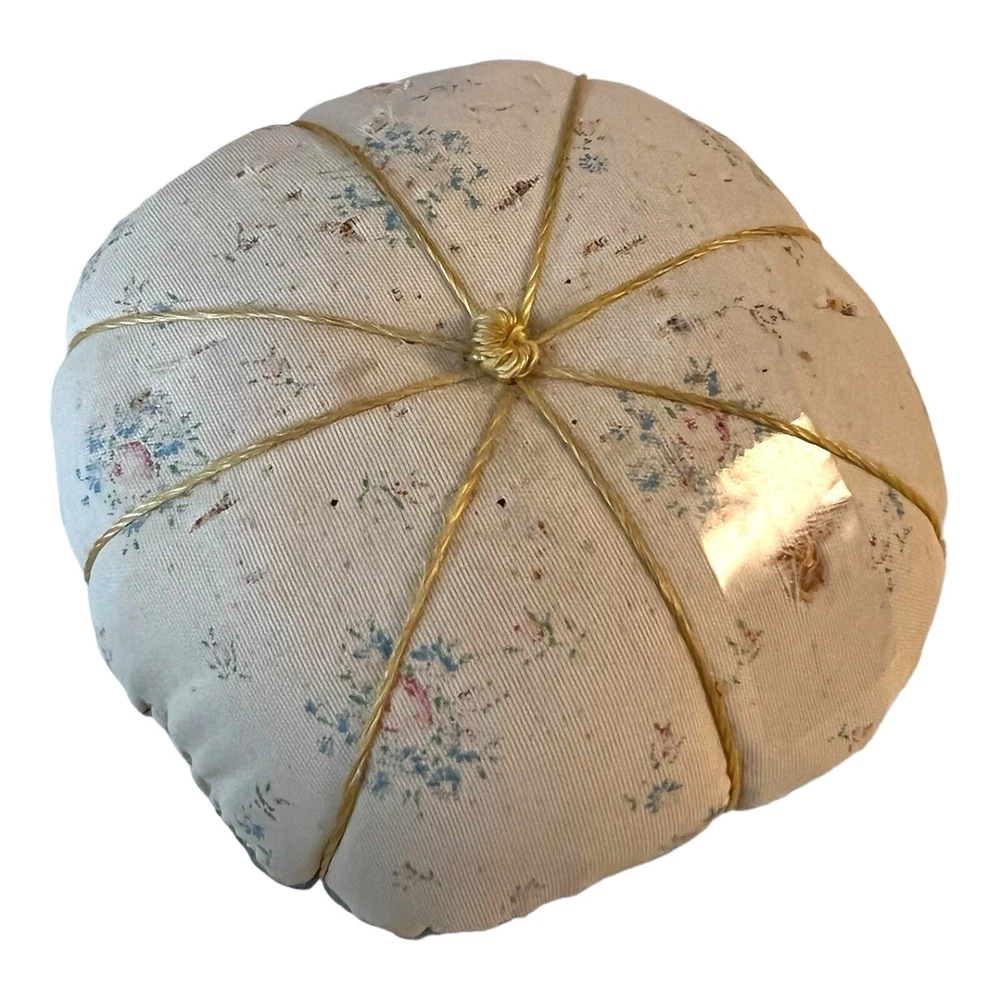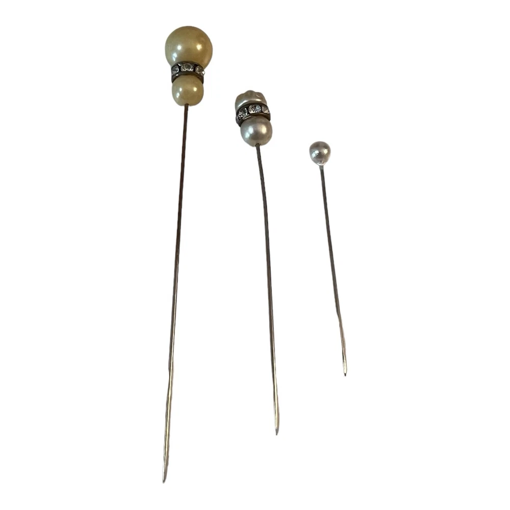 Lot of 3 vintage hat pins with pin cushion. Good preowned condition for pins, pin cushion has obvious wear with some holes - see photos for more details.