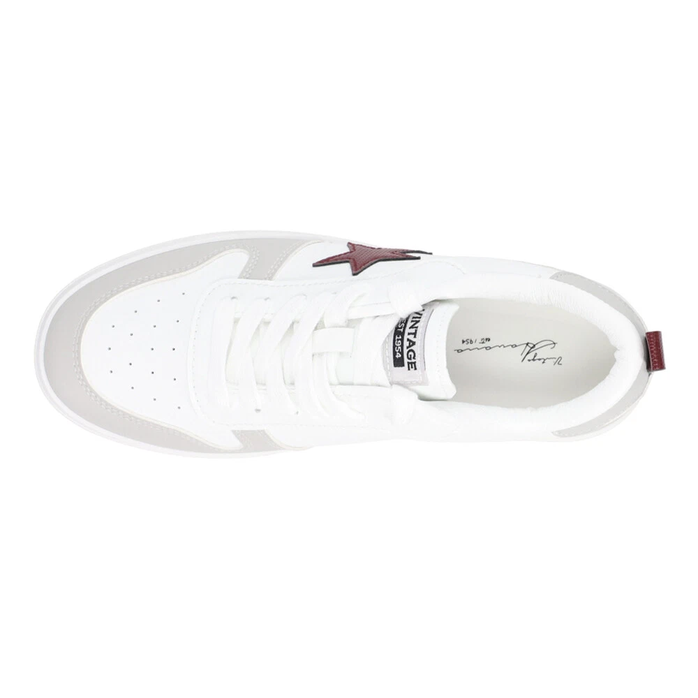 Aura Platform Lace Up Sneakers Product Details Leather upper Lace up closure Comfy cushioned insole Rubber outsole These casual platform sneakers for women boast a trendy design adorned with a distinctive star, adding a touch of flair to your everyday look. Additional Details Color: Grey, White Occasion: Casual Gender: Womens Age: Adult Brand: Vintage Havana