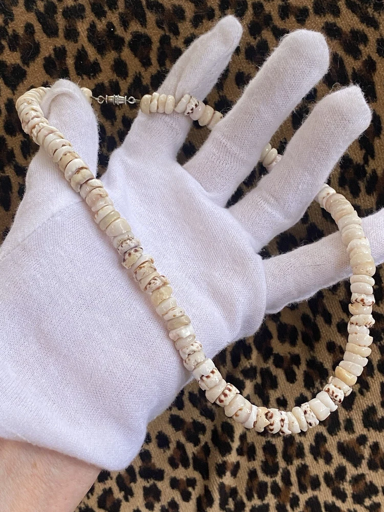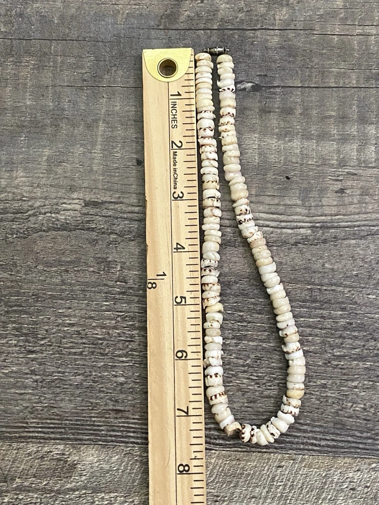 Estate Find! Vintage Hawaiian PUKA Bead Tiger Shell Surfer Necklace Barrel Clasp 16 inch This is a cool one! This would be a wonderful gift to a vintage jewelry or PUKA collector or a fantastic addition to your ever growing collection. *** I am currently listing a few more Puka necklaces so be sure to check them out. I am always happy to combine shipping! Please look at all of the images to form your own opinion as to the condition of the item. My personal opinion may differ from yours. To me, it is in groovy vintage condition -wear consistent with age. This is not a new necklace. From my experience as a kid growing up in the 70s with my own Puka necklace they were worn all the time - like ALL the time!!! Being shells, there may be slight imperfections, chips or pointy parts of the shells that are more natural and may have not been smoothed down/polished, etc. which give them character. Please carefully look over my images as you will be getting the exact necklace in this listing. I did not clean or polish the necklace. I know some folks like some patina so I leave polishing and cleaning up to the discretion of the buyer. I also did not want to ruin them with today’s harsh cleaners. For a smooth transaction, please read the entire description prior to making a purchase. Please check out all of the images as they are a major part of the description. Images may show wear/condition, details, maker mark and/or branding, approximate measurements and other details that will help you determine the condition and if this is what you were looking for. This would be a wonderful gift to a vintage jewelry collector or a fantastic addition to your ever growing collection. Prior to wearing, please get the item checked out, serviced or repaired by a professional as I can not be held responsible for how any item, clasp, stones, gems, chain, string, findings, etc. will hold up with any sort of wear. I am simply a reseller of the item. Not a jeweler or manufacturer. Thanks so much for looking! Condition : Vintage or preowned jewelry typically shows wear constant with its age. This may include things to expect such as light scratches, tarnish, in need of cleaning or polishing,etc. as it most likely has been worn and loved. That is why we love it so much. The images are a major part of the description so please zoom in and look closely so there will be no surprises and you know exactly what I am selling and you will be receiving. ** Most of the time, I try not to disturb any vintage/preowned jewelry by cleaning and/or polishing it in order to keep it in its original patina leaving it to your discretion. I do not want to take a chance ruining something. Depending on your own taste, you can either clean or polish it or keep it in its original state. My jewelry comes from estates, individual consignors, individual or bulk purchases, etc. In most cases, I do not know the history of the jewelry nor where it has traveled or been stored. Most importantly, I have no idea if it has been around pets, smoke, air fresheners or any sort of allergen or if it smells. (I do not smell jewelry) Thanks so much for looking! Disclaimer: Some images may have been magnified to show you details. I often use a penny as a prop to help you gauge the size. The penny and any prop, mannequin or measuring/weighing tool are not part of this listing - only the item mentioned in the title is for sale. Unless mentioned in the written description, the colors on my screen are the colors of the piece as I see it. Before making a purchase, you are accepting the fact that your device or computer screen may show a different color. Shipping: This item will be sent out with delivery confirmation and insurance to an eBay supplied address only. If you need the item to be shipped elsewhere, please change the address in eBay prior to completing your purchase. For international shipping, I use the eBay Global shipping program. All shipping, taxes, customs or anything else is taken care of and determined by eBay as I simply send items to a US shipping hub per the Global shipping agreement.