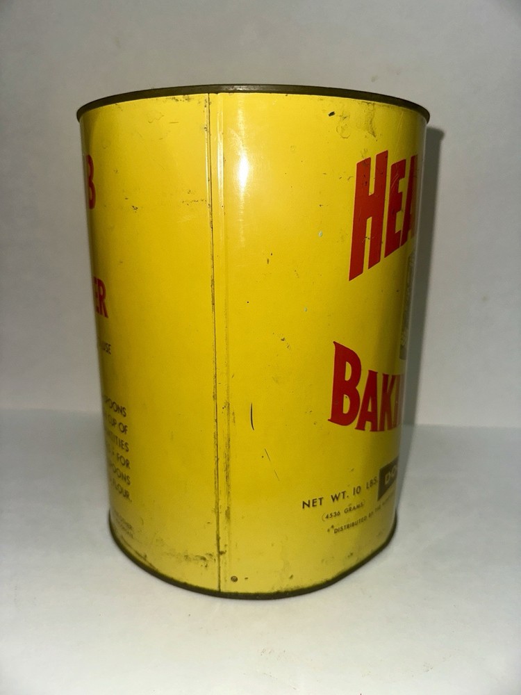 This vintage 10lb can of Hearth Club Baking Powder is an original advertising piece from Indiana. Featuring a multi-color design, it showcases a bakery and baking theme. Made in the United States, this collectible item is in great shape and offers a nostalgic glimpse into the past.