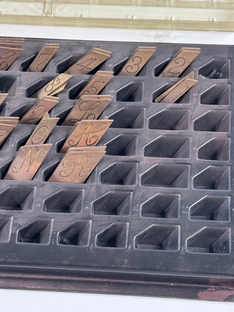 Vintage Hermes Brass 1.5" Engraving Set Letters Numbers 55 Pieces