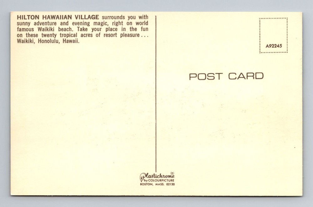 Vintage Hilton Hawaiian Village Waikiki HI Advertising Postcard