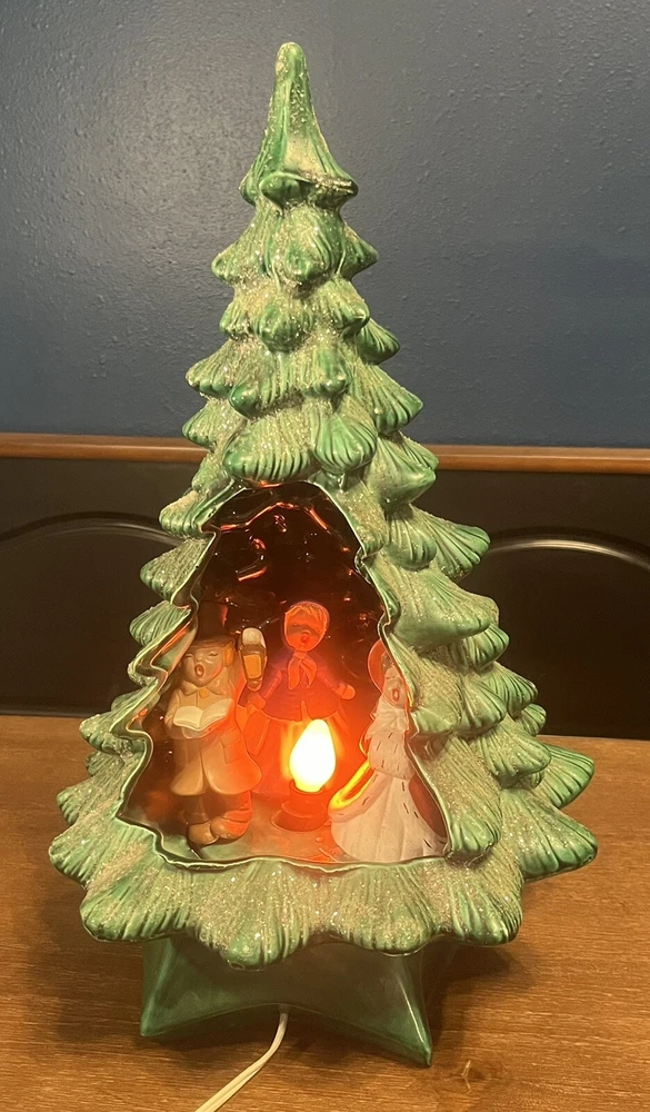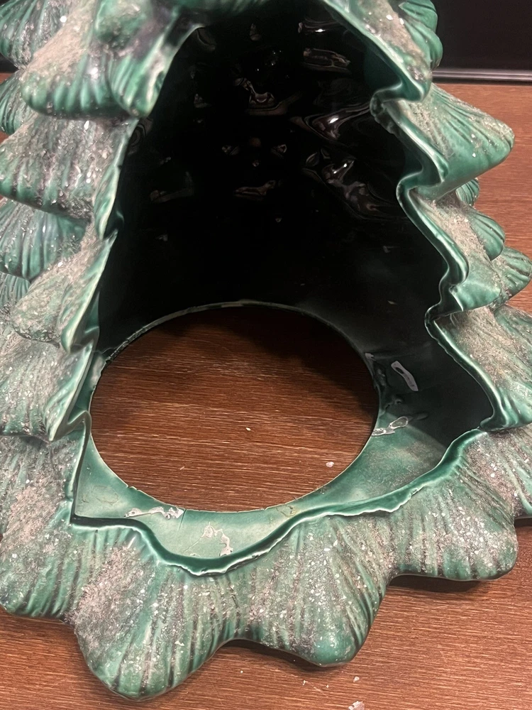This vintage Christmas tree from Holland Mold is a unique addition to your holiday decor. With a star base and large ceramic tree, it's sure to make a statement in any room. The tree is perfect for collectors and holiday enthusiasts who are looking for a unique decoration. Get your hands on this 1970s era tree and add a touch of vintage charm to your Christmas decor.