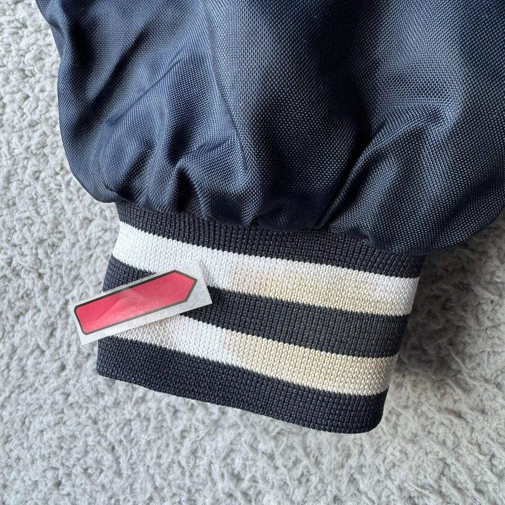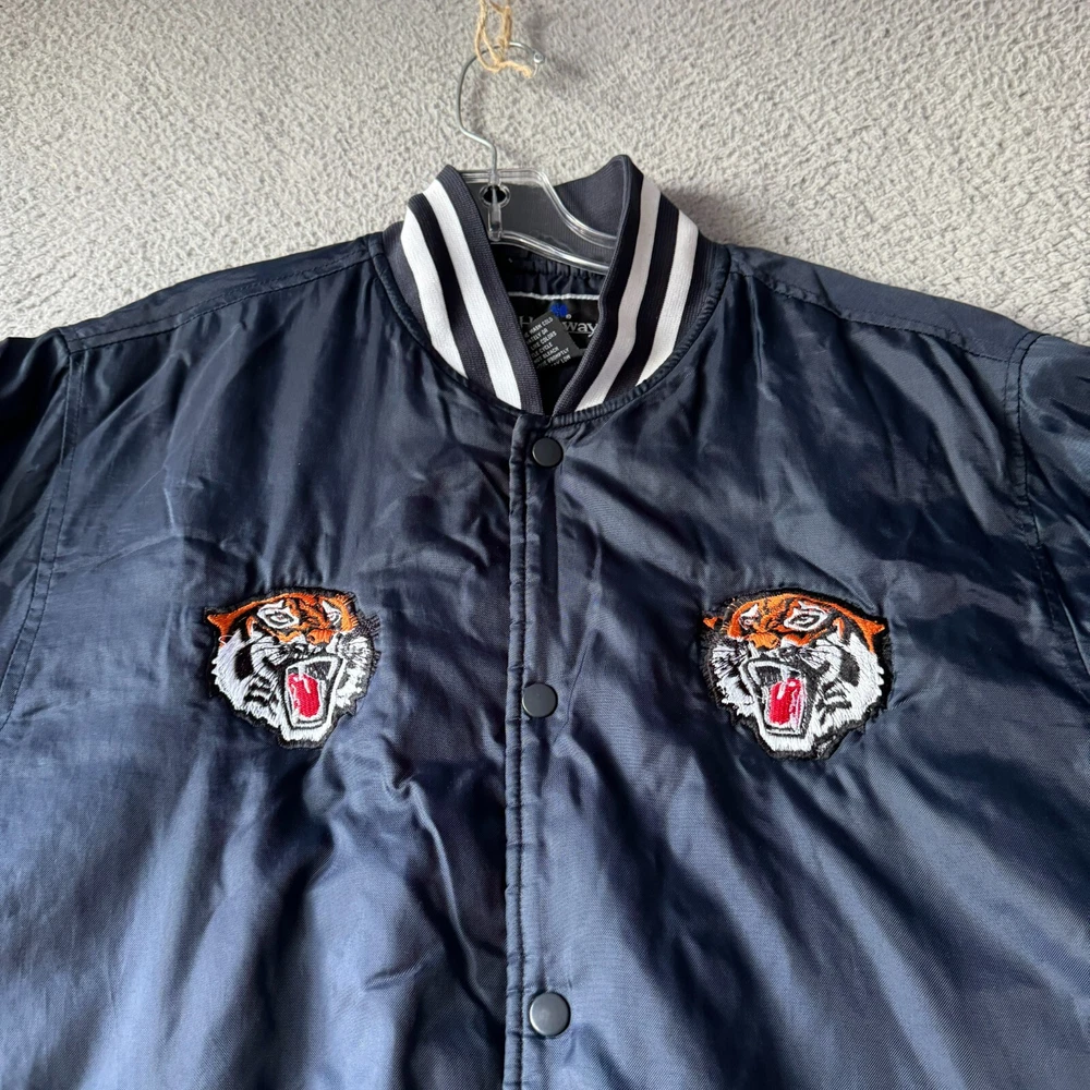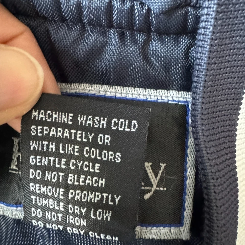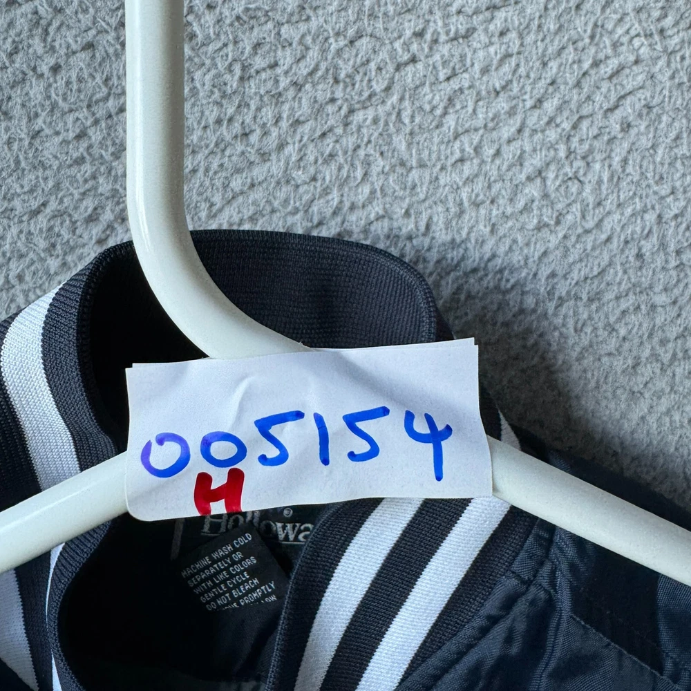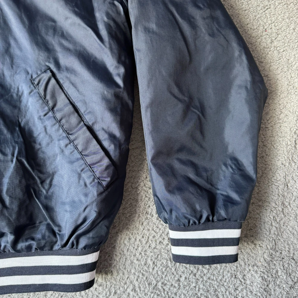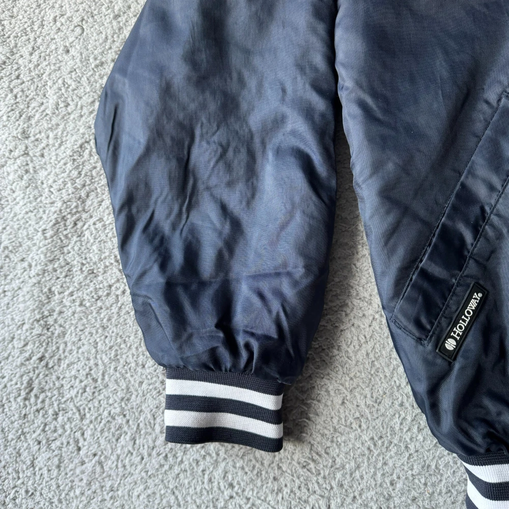 Vintage Holloway Jacket Mens Medium Blue Varsity Bomber Quilted Nylon Snap Coat Condition: Pre-owned. Some light stains on cuffs as shown in photos, good condition otherwise. Please review all photos carefully to assess condition and check measurements for best fit. Please let us know if you have any questions. Thanks for shopping with us.