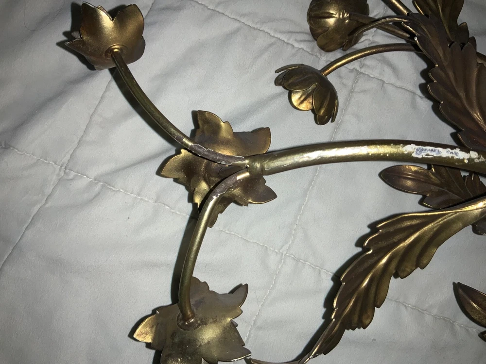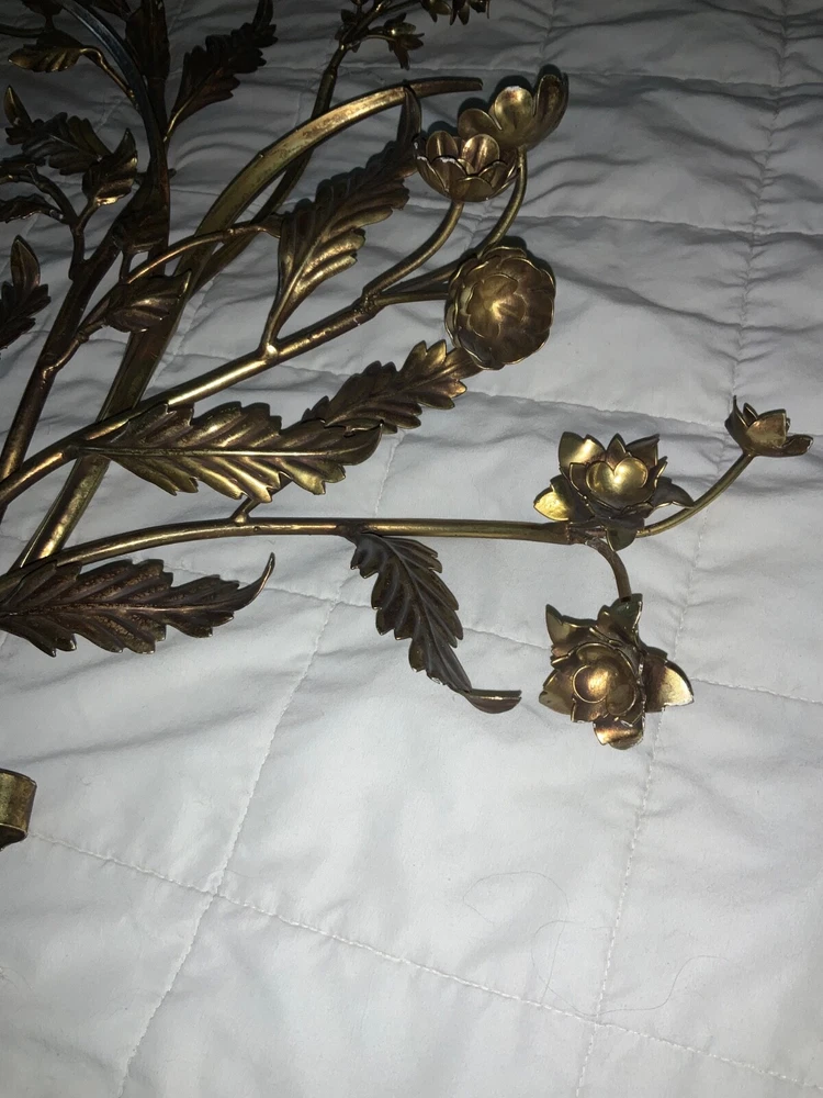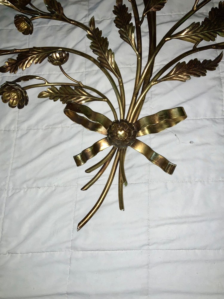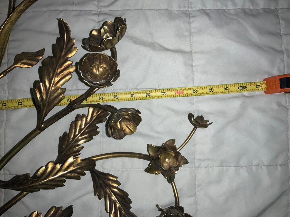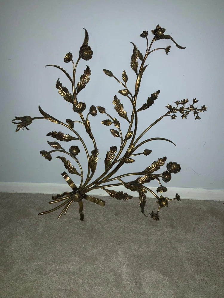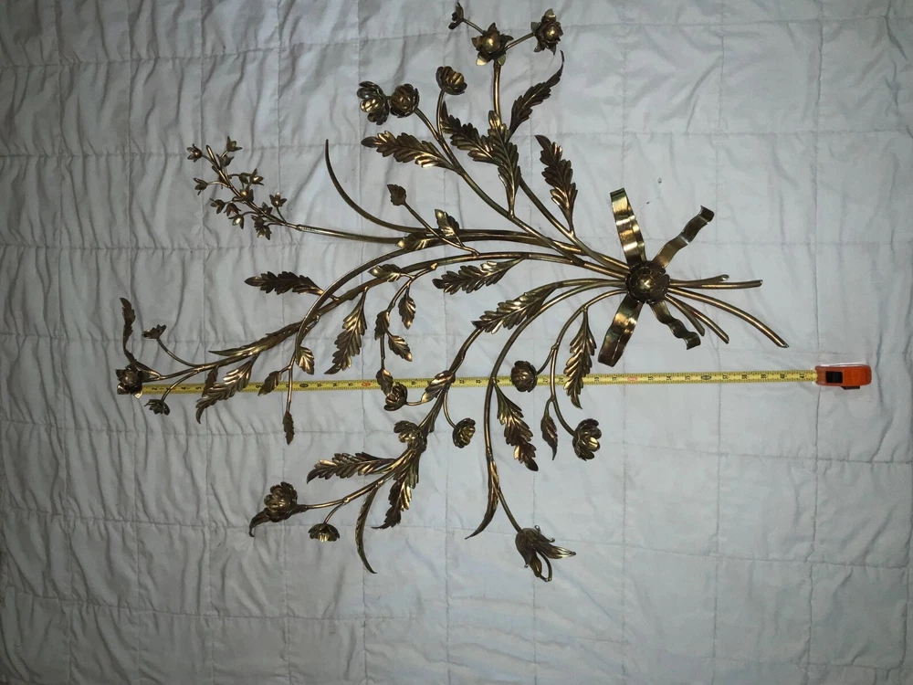 This vintage Italian Hollywood Regency Style gold gilt tole wall art measures 41 x 34 inches, making it a large and eye-catching piece for any home decor. The rich gold color and intricate design give it a luxurious and elegant look, perfect for adding a touch of old-world charm to a space. Made of tolewear metal, this post-1940 piece showcases the sophisticated style and craftsmanship of Italian design. Ideal for collectors of decorative art, this unique and original piece is sure to be a standout addition to any collection. Please see pics for dimensions and condition. Message me with any additional questions of for more photo’s. Item is heavy weights 8.8 lbs.