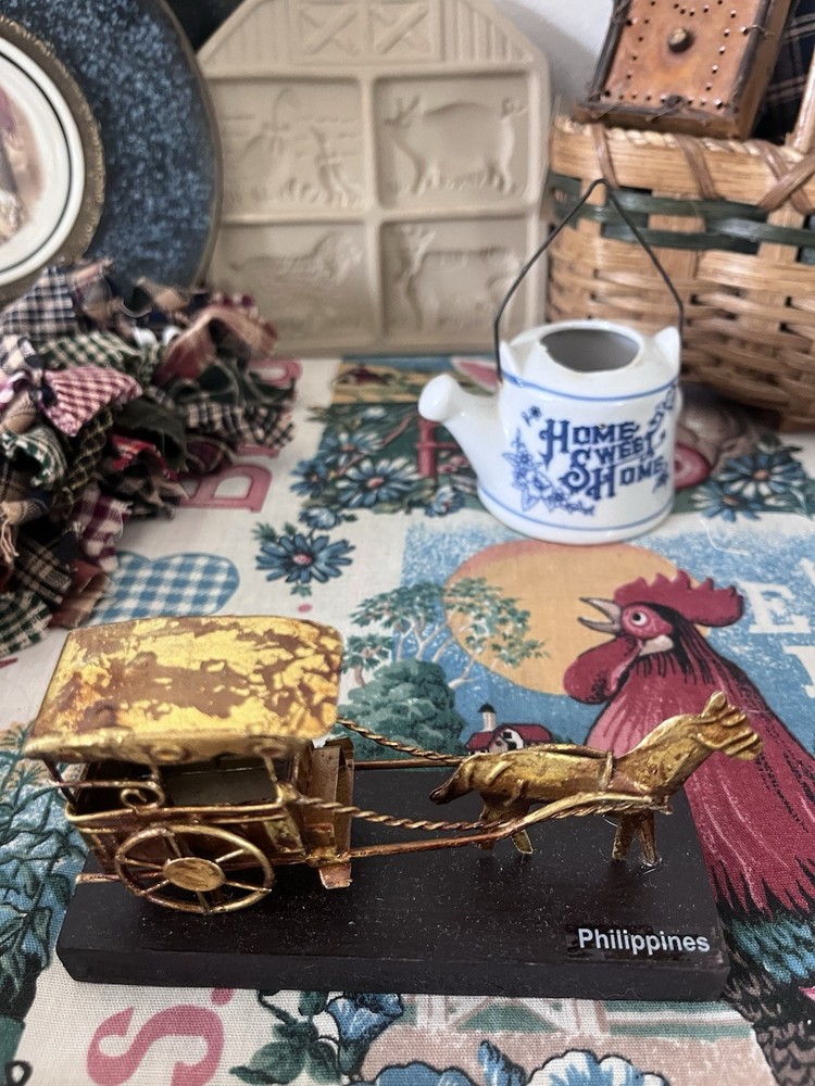 Beautiful lot! All has been well cherished changing out decor. There is the adorable little porcelain water can, the little occupied Japan planter,the candle rag wraps double A batteries Handmade heart basket with the wall hanging heart basket, the glass sugar bowl, the vintage cookie mold too cute, little buggy made of metal, two regency England brass wall plates see photos one has crackling, the blue and white glass door knobs small, and other items I may have missed.All has belonged to me like most items I sell I change out seasonal most of my home decor. Drives the hubby nuts but what’s a gal to do lol.Blow up all photos please part of the description as well. Other than mentioned no chips etc in glass.I also have another lot or two that I paired with all this. I have a gorgeous large framed primitive picture listed also that went perfect and that is how I had my dining room:) I don’t sell items that I would not want that are all damaged. Hoping to end selling soon so get while ya can. Please ask any questions happy to reply. All sales are finale. All will be packed by professional’s as well. Have a blessed day thanks. *the table cloth displayed on is not included thanks.