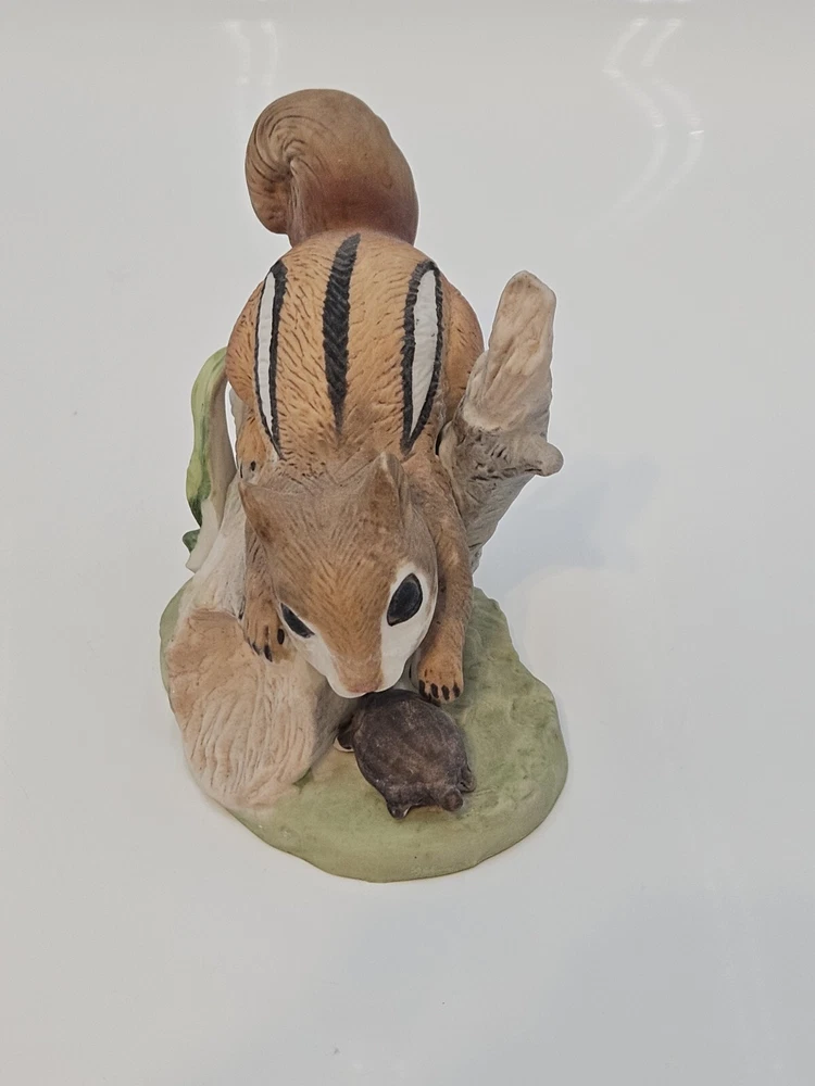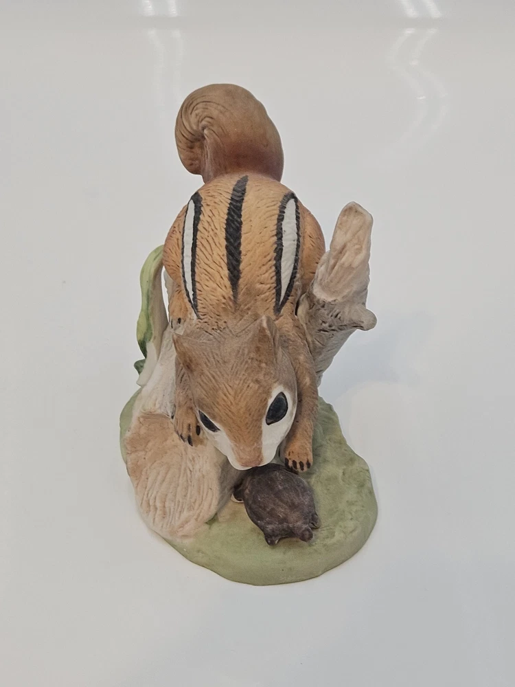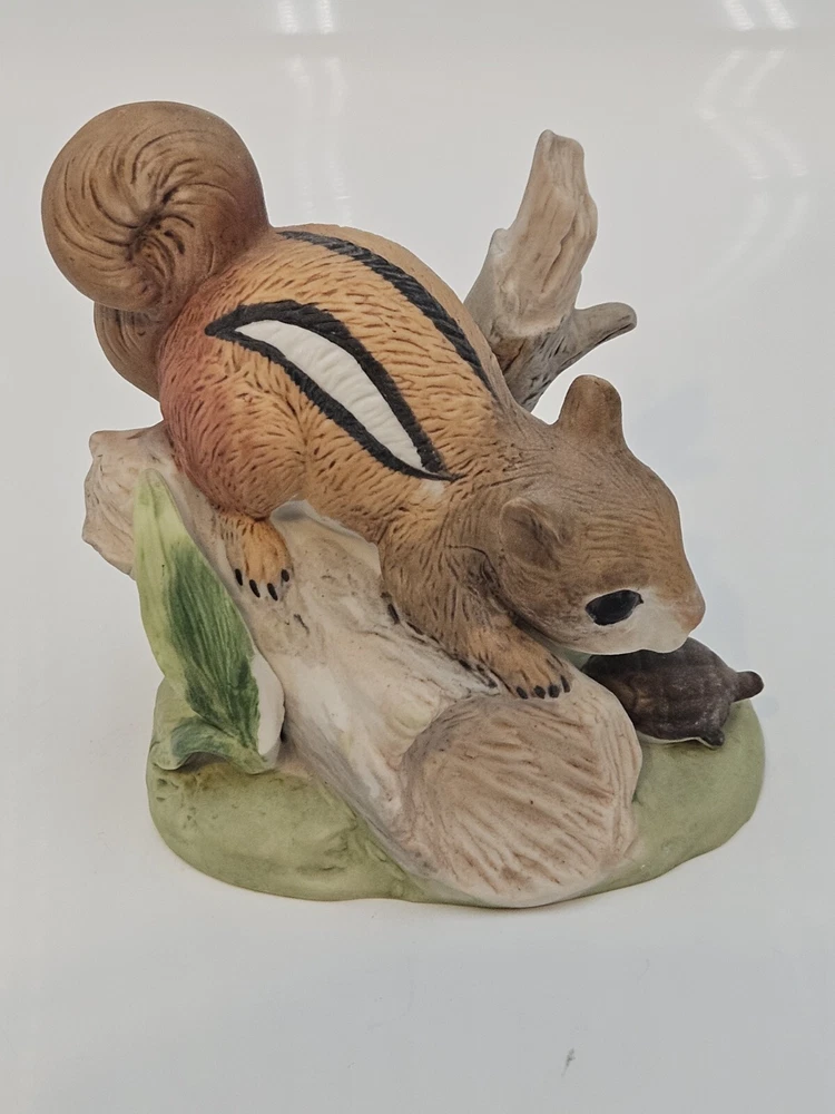 This vintage Home Interiors figurine features an adorable chipmunk design, perfect for any interior decor collection. Crafted from durable porcelain material, this piece measures 4 inches in length and 4.5 inches in height, making it a great addition to any display. With intricate details and a timeless design, this figurine is sure to bring charm and character to any space.