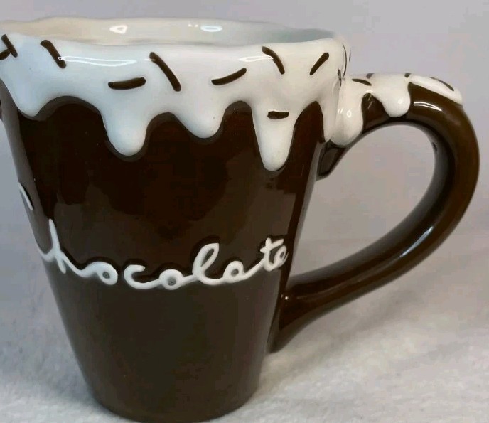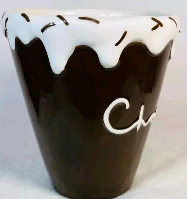 Rare Hot Cocoa Mug With Overflowing Whipped Cream & Sprinkles by Nanette Vacher. Condition is Used. Shipped with USPS Ground Advantage.