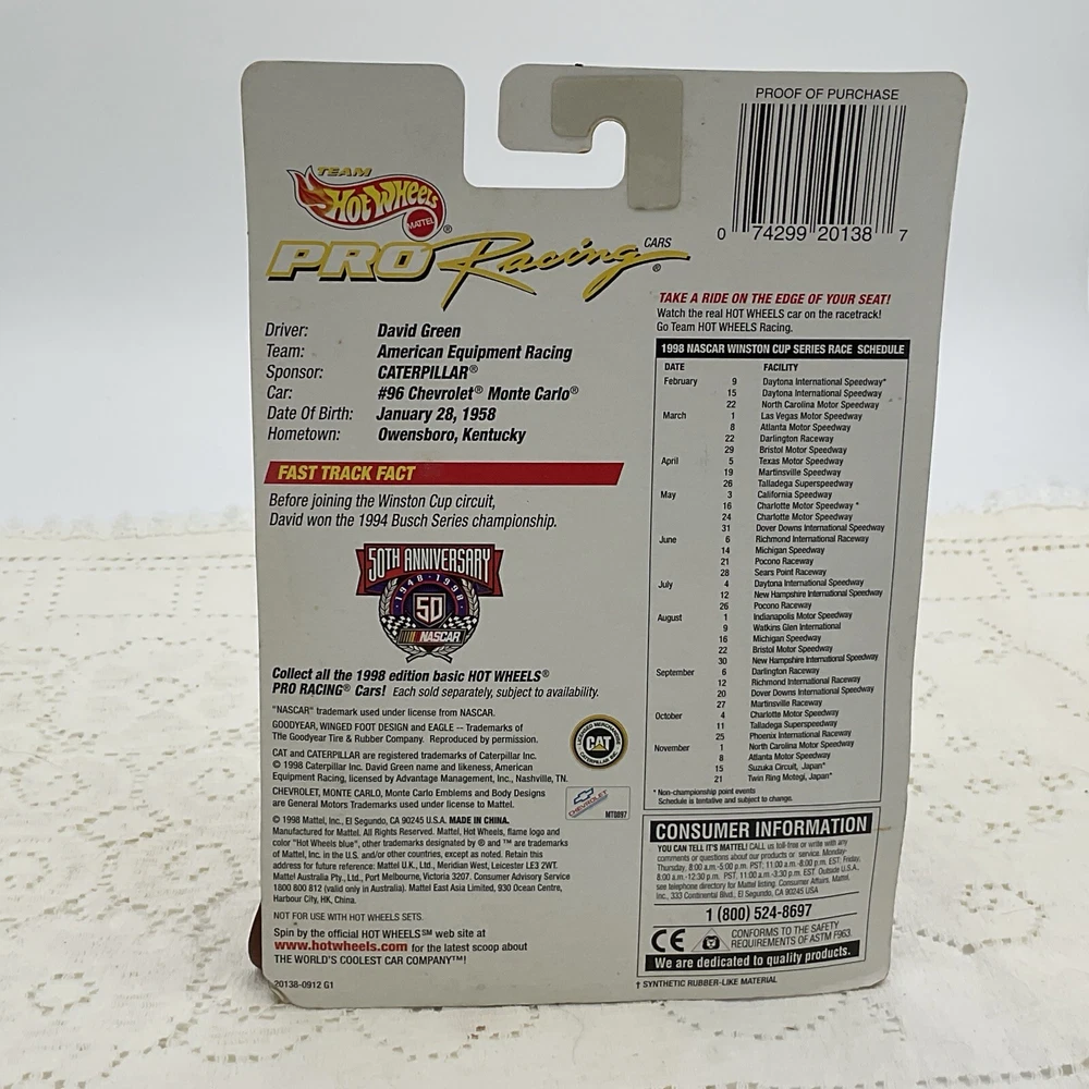 Vintage Hot Wheels David Green #96 Chevrolet Monte Carlo Caterpillar New