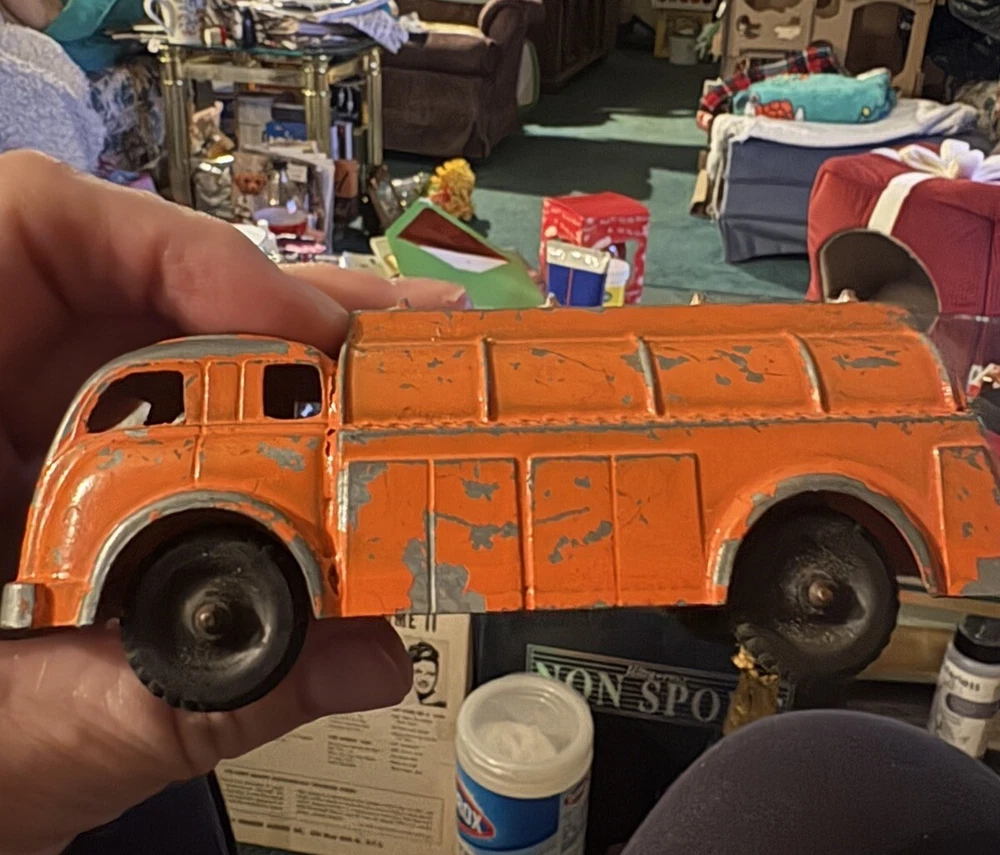 Vintage Hubley Toy #406 Gas Oil Fuel Tanker Tank Truck Orange Diecast