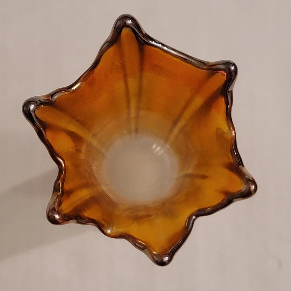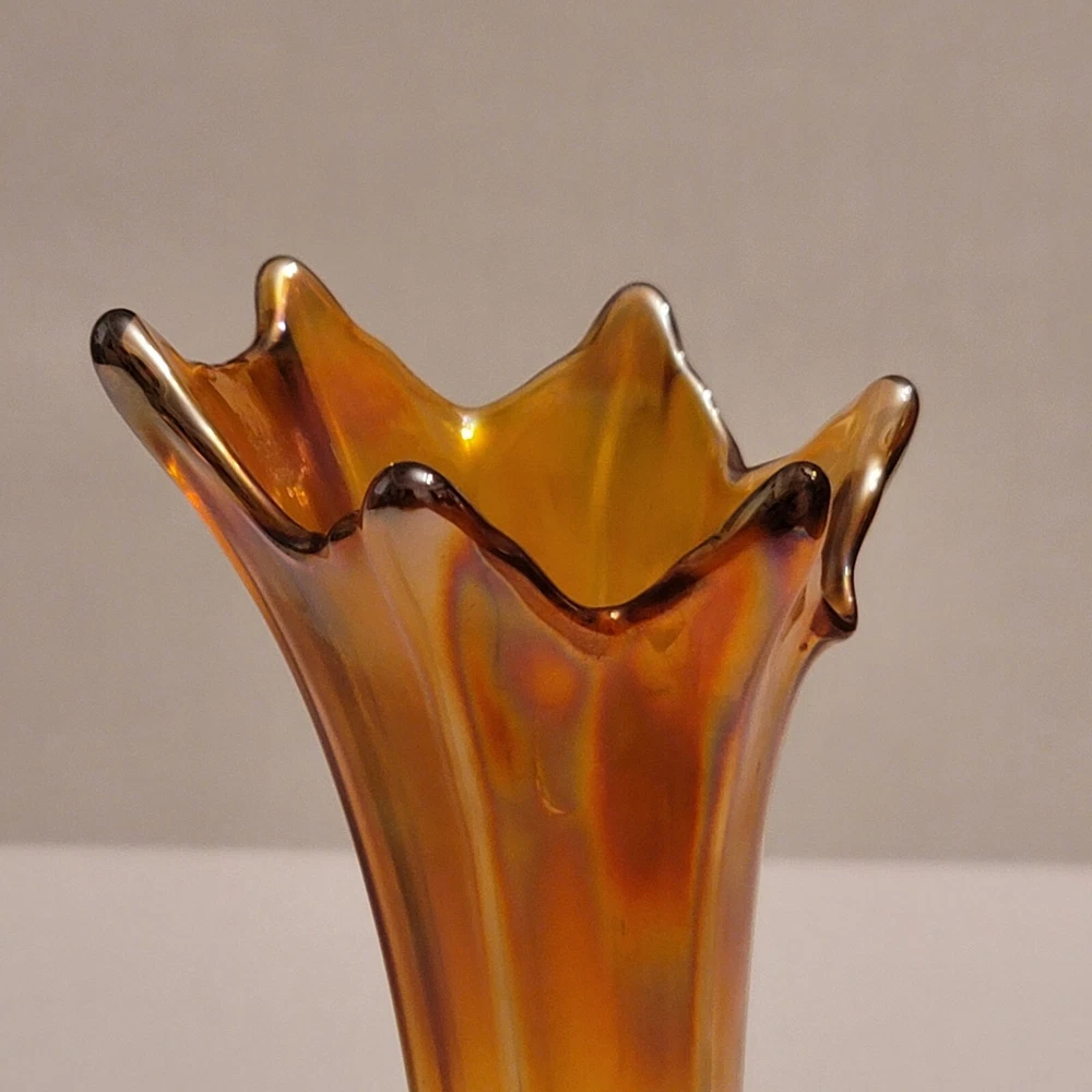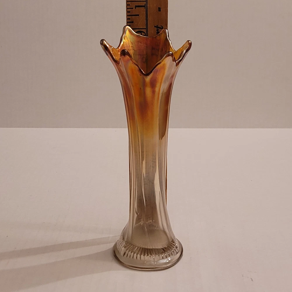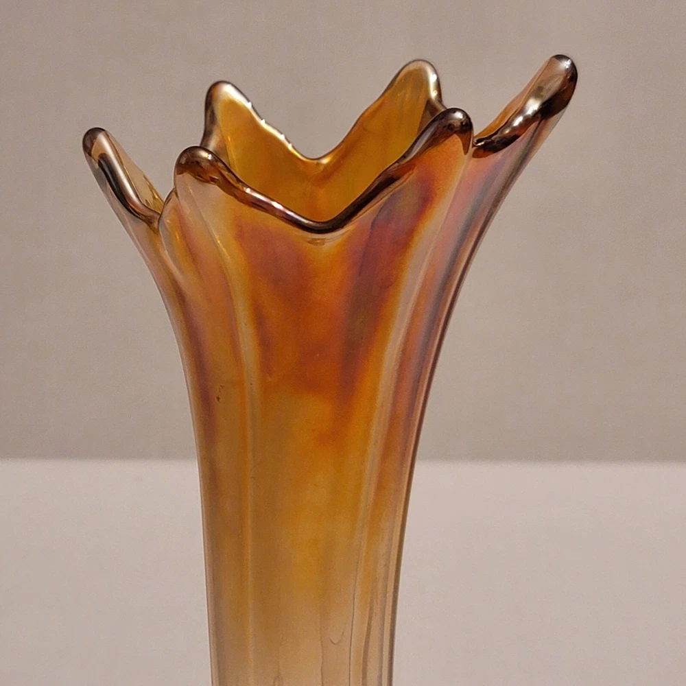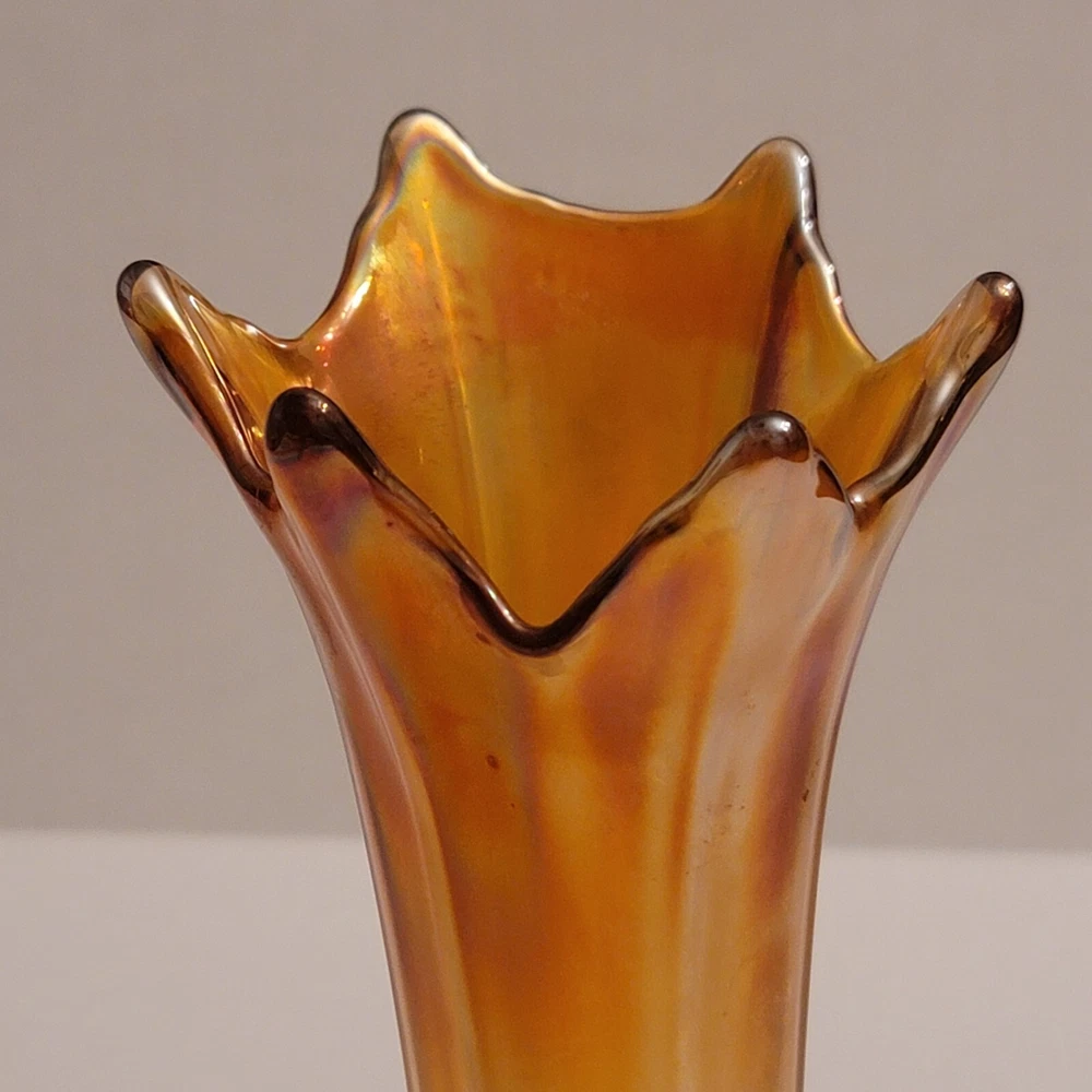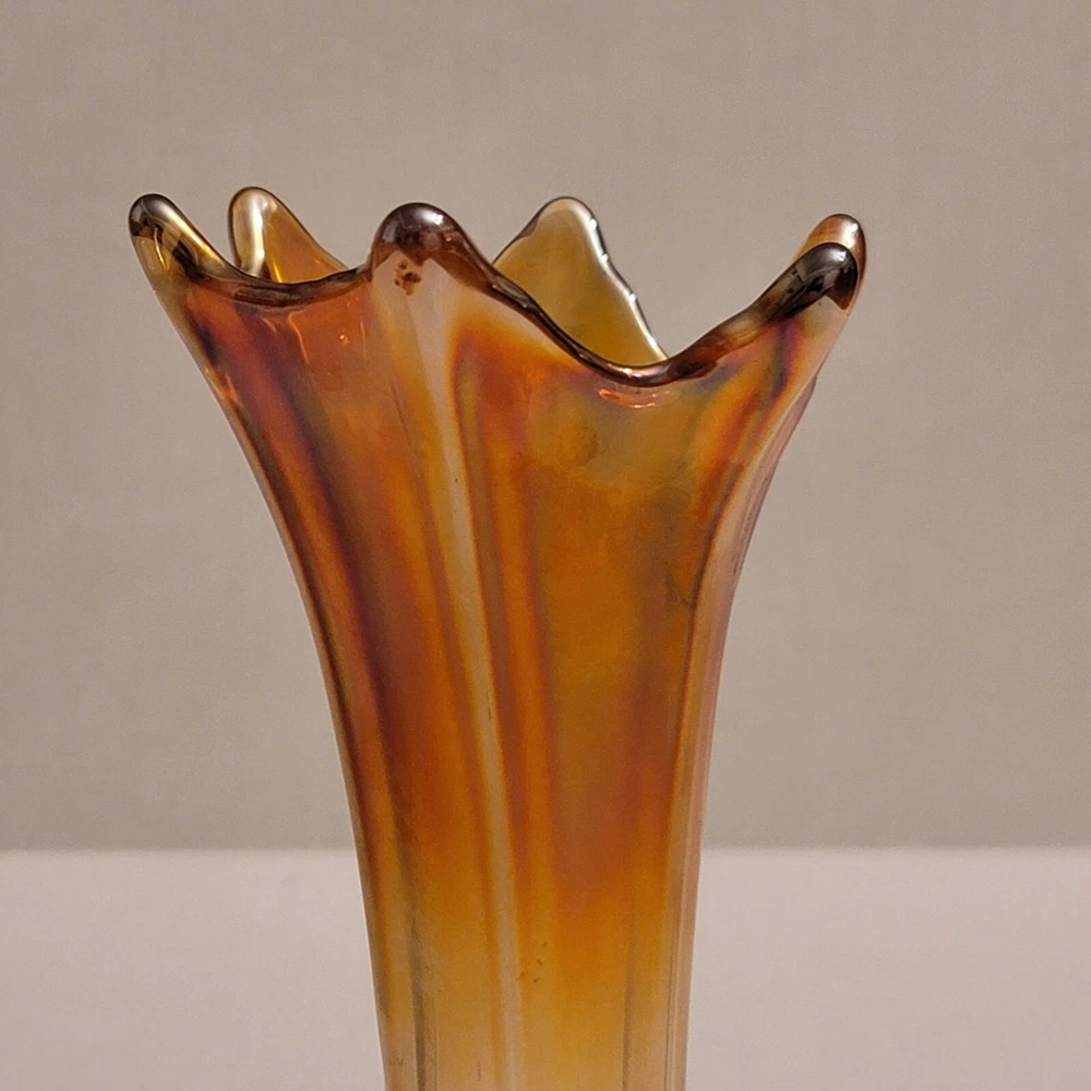 Vintage Imperial Swung Glass Vase Opalescent Marigold Carnival Glass 9" Tall Very Good Overall Condition No Cracks or Chips