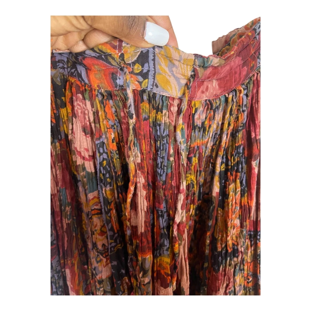 Vintage In Style New York 90s Bohemian Pleated Midi Skirt Brown Free Size Pleated midi skirt with a bohemian-inspired silhouette Floral brown color, versatile for various styling options Free size, designed to fit a range of body types comfortably Lightweight fabric with a flowy, relaxed fit Casual wear, bohemian-style outfits, or weekend outings Machine washable for easy care Refer to photos for the exact condition of the item.