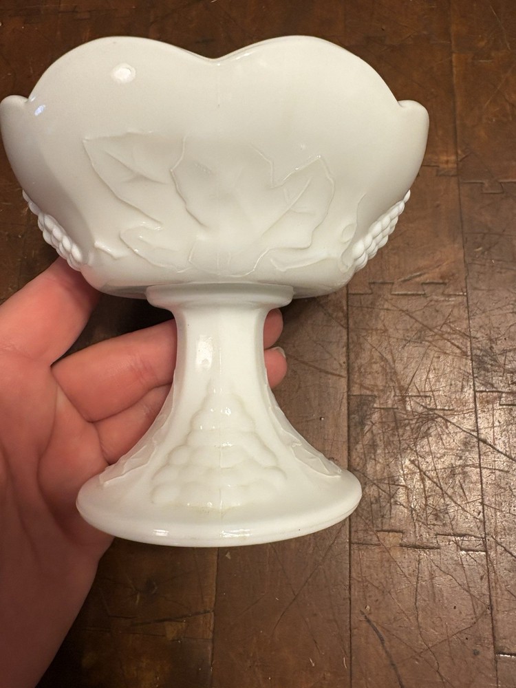 This vintage milk glass candle holder is absolutely stunning! The intricate grapes design adds a classic, elegant touch to any space. Perfect for taper candles, it’s both decorative and functional. The size is ideal for shelves or tabletops, and the retro charm makes it a standout piece. Love how it elevates my home decor effortlessly!