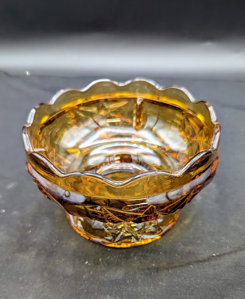 Add a touch of vintage charm to your home with this stunning yellow gold candy nut dish from Indiana Glass Constellation Tiara. The round bowl features a glossy finish and a beautiful constellation pattern that is sure to catch the eye of your guests. Measuring 5.5 inches in diameter and 3.5 inches in height, this decorative piece is perfect for all occasions and will make a great addition to any collection. The Tiara Indiana brand is well-known for its quality and craftsmanship, making this original piece a must-have for any glass enthusiast.