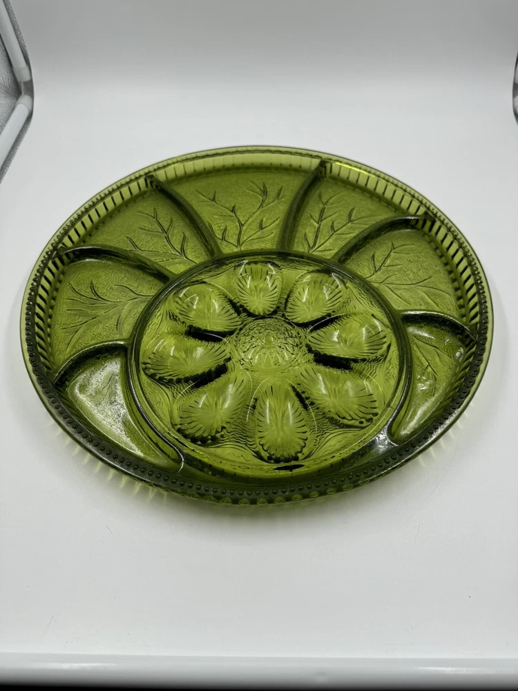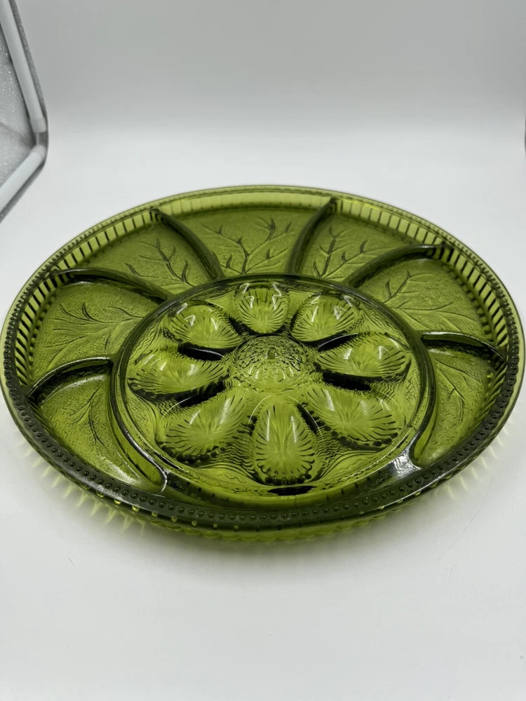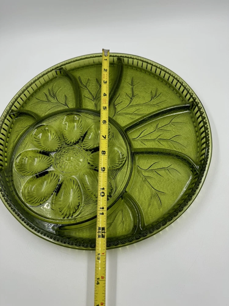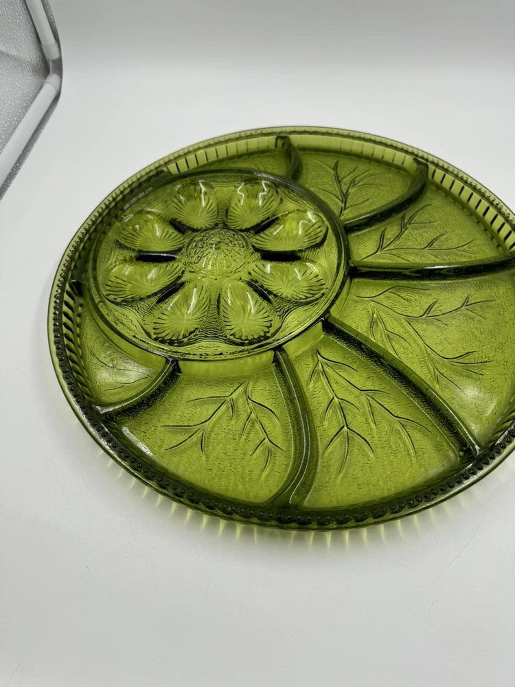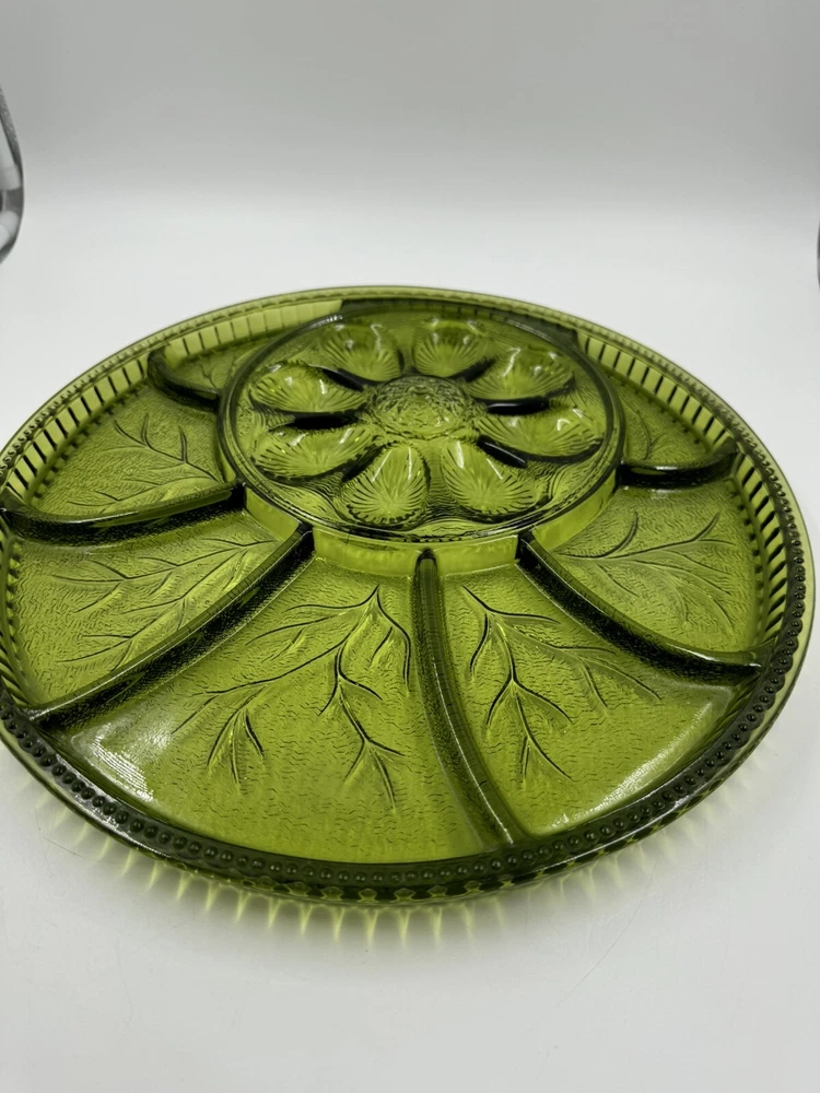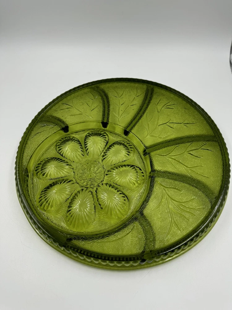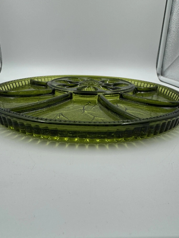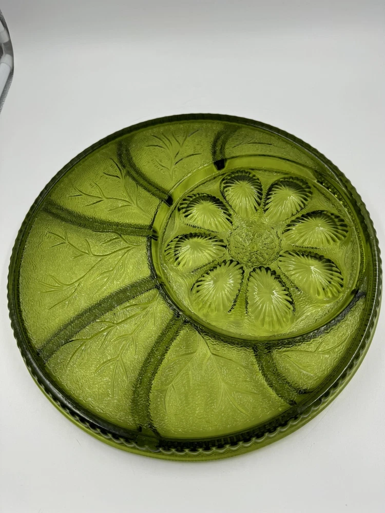 Type of Glass:Pressed GlassType:PlatterFinish:GlossyHandmade:NoOccasion:All OccasionsMaterial:GlassTime Period Manufactured:1960-1969Pattern:VintageShape:RoundColor:GreenFeatured Refinements:Indiana PlateOrigin:IndianaProduction Style:Pressed GlassOriginal/Licensed Reproduction:OriginalBrand:Indiana GlassCountry/Region of Manufacture:United StatesVintage:Yes