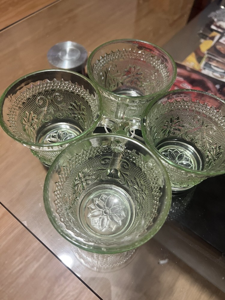 Duncan Miller Waterford Green Footed 4" Cocktail or Dessert 7 Glasses 1930s VTG