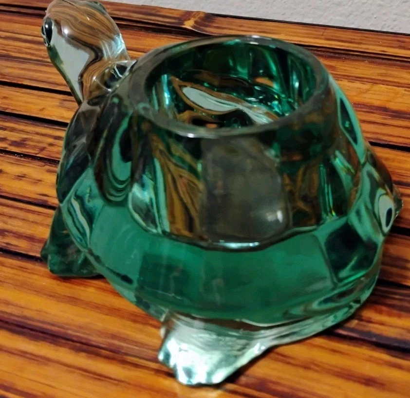 The Vintage Indiana Glass Turtle Green Spanish Tealight Votive Candle Holder is a unique and charming decorative collectible. Made of green glass with a Spanish style design, this candle holder features a turtle character design that adds a whimsical touch to any space. Perfect for adding a touch of vintage elegance to your home decor, this candle holder is a perfect addition for turtle enthusiasts or collectors of decorative glassware.