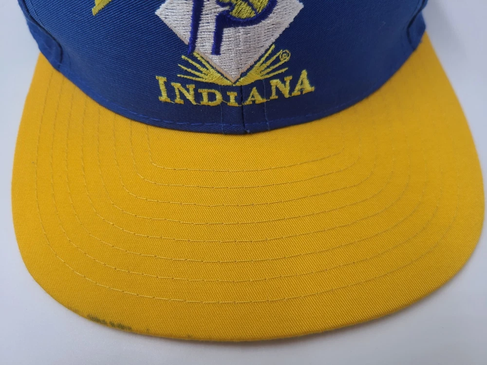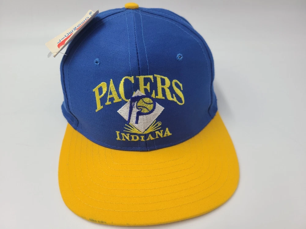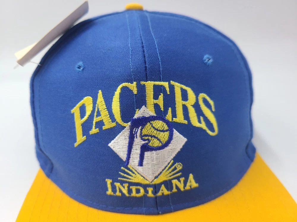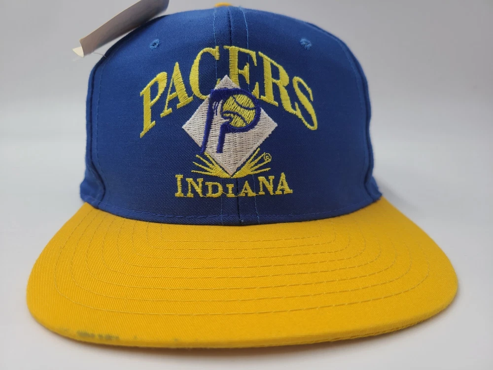 Has some stains on the brim and underneath the brim as seen in photos. Vintage Indiana Pacers AJD Snapback Hat Cap Men Women NBA Basketball Blue Yellow. EACH ADDITIONAL HAT PURCHASED IS ONLY $1 ADDED SHIPPING!