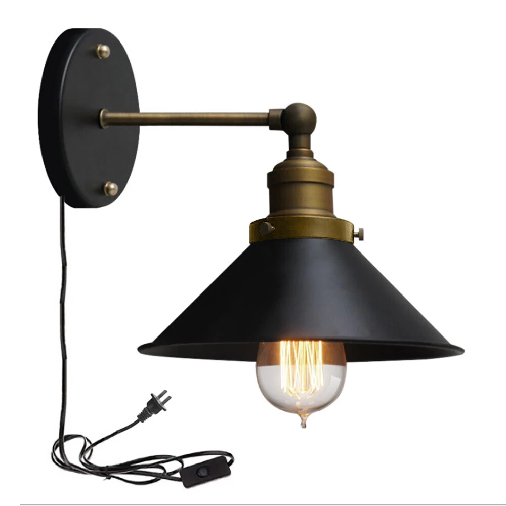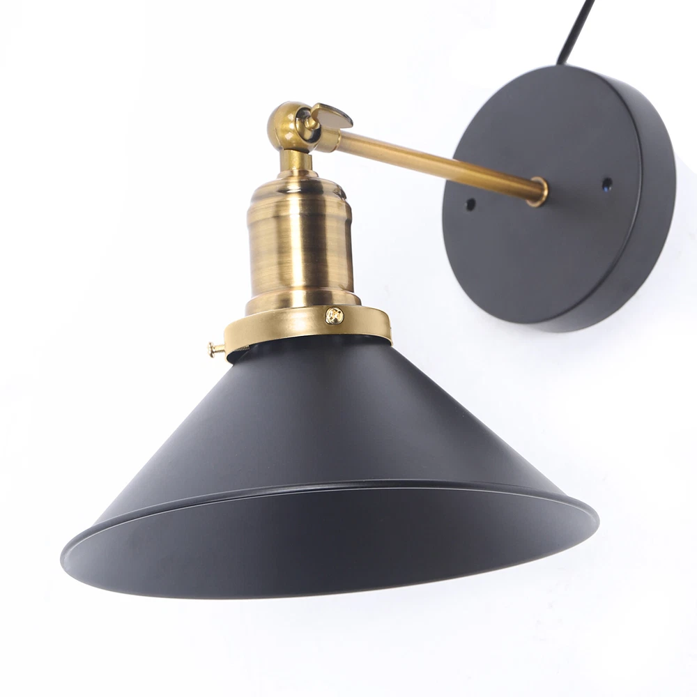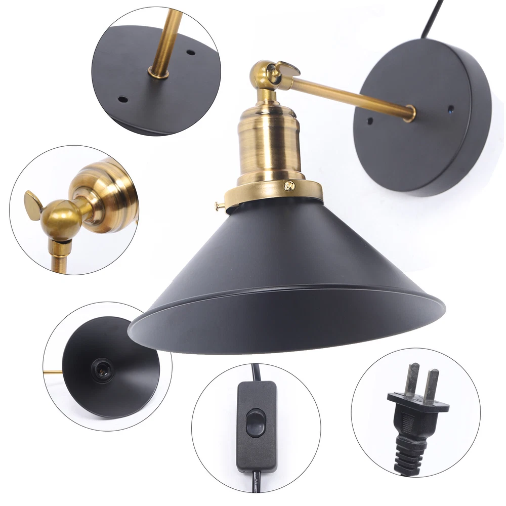 Vintage Wall Lamp Plug-In Industrial Wall Sconce Light Bedroom Lighting Fixture Product Description Light Information Category: Wall Lamps,Wall Sconces Usage: Indoor Lighting,Hallway Shade Shape: Cone Dimensions Fixture Height: 5" (13 cm) Fixture Width: 8.5" (22 cm) Arm Length: 5" (12 cm) Canopy Width: 5" (12 cm) Switch Cord Length: 71" (180 cm) Bulb Information Bulb Type: LED/Incandescent/Fluorescent Bulb Base: E27 Bulb Included Or Not: Bulb Not Included Material Shade Material: Iron Payment Delivery details Terms of sales About us Contact us Payment We accept ebay payment 。 Fees such as import duties, taxes are not included in the item price or shipping costs. These charges are the buyer's responsibility. Delivery details Shipping: 2-9 working days to: USA Terms of sales We maintain high standards of excellence and strive for hundred percent customer satisfaction. Feedback is very important to us. We hope that you contact us immediately before you give neutral or negative feedback, so that we can address your concerns. It is impossible to address issues if we do not know about them! About us Your satis faction is our ultimate goal. We work hard to earn your trust and future business. Our certified technicians have tested each item before shipping. The unit comes with 1 year limited warranty on all manufacturing defects. a) If you receive a defective item, you may return it or ask for a discount. Please contact us within 14 days after you receive the package. b) What you returned must be intact and in its original packaging as re? u. Customer is responsible for shipping costs of the returned item. c) We will cover the cost of shipping back t with the shipping rate indicated in the registration page. We will send you a new unit or refund the full payment you paid. Thank you. Contact us Business Hour Business Hour: Monday To Friday: 8:30 AM to 5:00 PM (Beijing China time) Due to time zones, our reply to your questions may not be immediately. But within above working time, we will reply your email within 24 hours. If it's non-workdays, please kindly be patient and wait till Monday. Please contact us with ebay message. Please feel free to contact us if you have any questions. Monday To Friday: 8:30 AM to 5:00 PM (Beijing China time) Due to time zones, our reply to your questions may not be immediately. But within above working time, we will reply your email within 24 hours. If it's non-workdays, please kindly be patient and wait till Monday. Please contact us with ebay message. Please feel free to contact us if you have any questions. Number of Settings 1 Power Source Corded Color Black MPN Does not apply Installation Area Indoor Mounting Wall mounted Department Universial Control Style switch Sensor Type AS SHOWN Cord Color Gold Features Wall Mounted LED String/Strip Type WS2812 Shade Shape Cone Finish Antique Wall Lamps Room Hallway Character Family Wall Sconce Lighting Technology LED Item location CA /NJ /Austell Type Wall Lamps Brand Unbranded Style Vintage Material Iron Bulb Type LED/Incandescent/Fluorescent Bulb Base E27 Bulb Included Or Not Bulb Not Included Fixture Height 5" (13 cm) Fixture Width 8.5" (22 cm) Arm Length 5" (12 cm) Canopy Width 5" (12 cm) Switch Cord Length 71" (180 cm) Energy Star A+ EC Range A+ - G