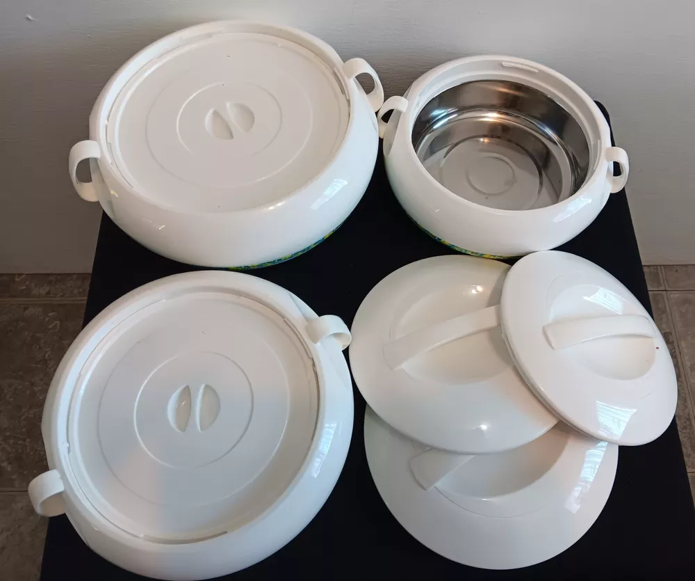 InsoCore (6) MIX & MATCH Piece + 2 Inner Lids (1) 2.5 Quart Server with Lid (1) 1.5 Quart Server with Lid (1) 1 Quart Server with Lid U S A Seller Item(s) Exactly As Shown In The Photos. Please See All Photos For Full Item Condition And Details. If the item is used, any and all flaws will be shown in the detailed pictures . There is no damage to the item, a scuffs here and there that will probably clean off. Carefully packed and shipped to you by the next business day.