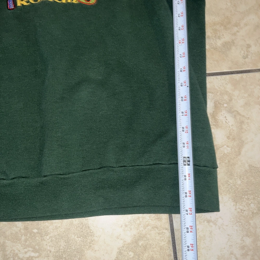 This vintage Ireland sweatshirt is a must-have for any fashion-savvy man. The green cotton blend fleece fabric is comfortable and perfect for all seasons. The pullover style features a crew neck and long sleeves, making it a great addition to any wardrobe. The sweatshirt has an embroidered design with no graphic print and is machine washable for easy care. It is a regular fit, size XL, and has a solid pattern. This sweatshirt is perfect for anyone who loves the USA theme and is looking for a vintage piece to add to their collection.