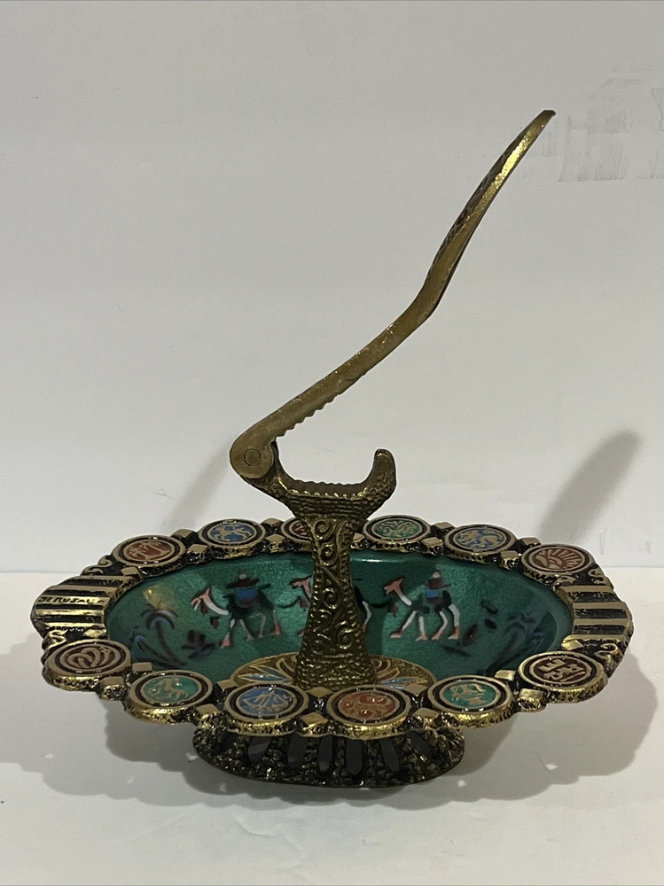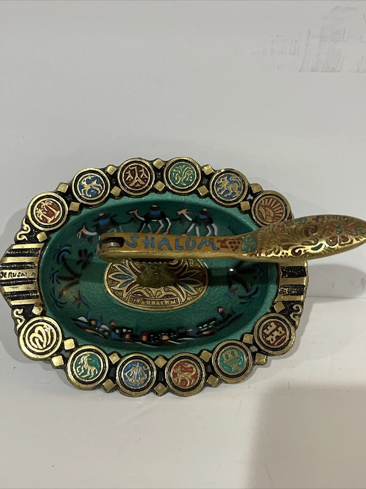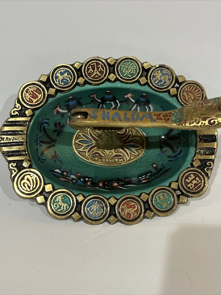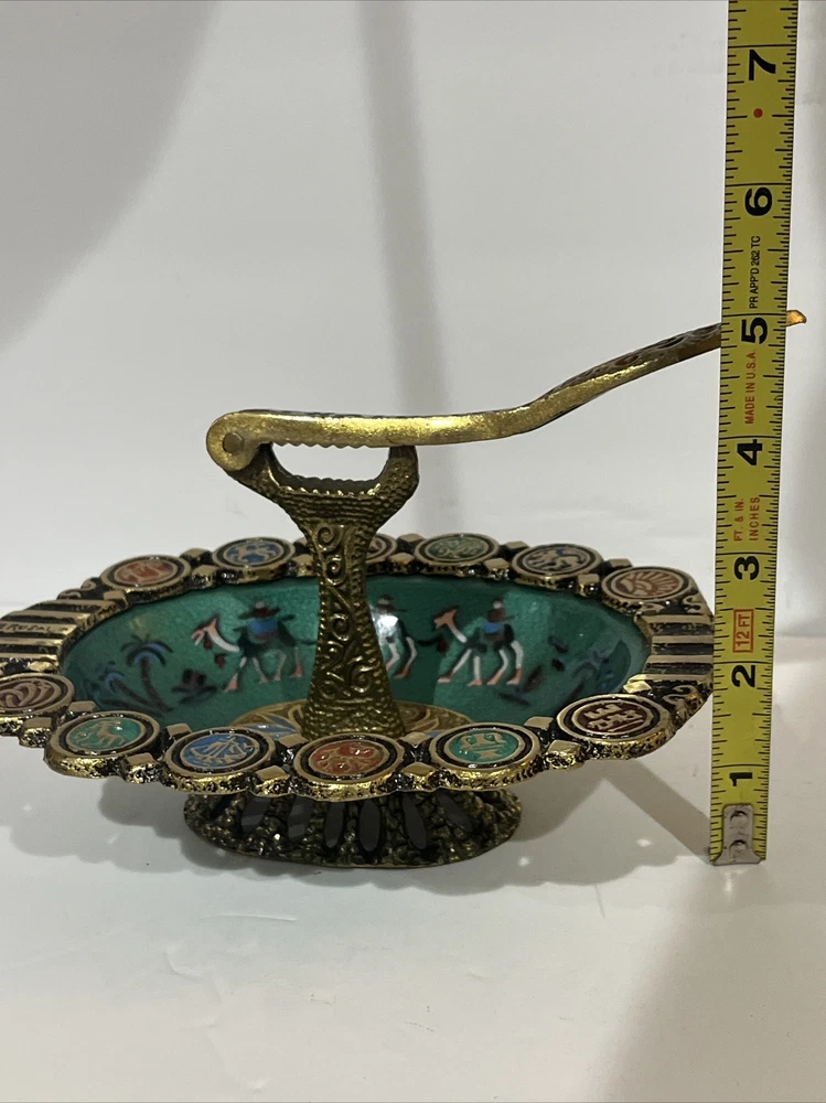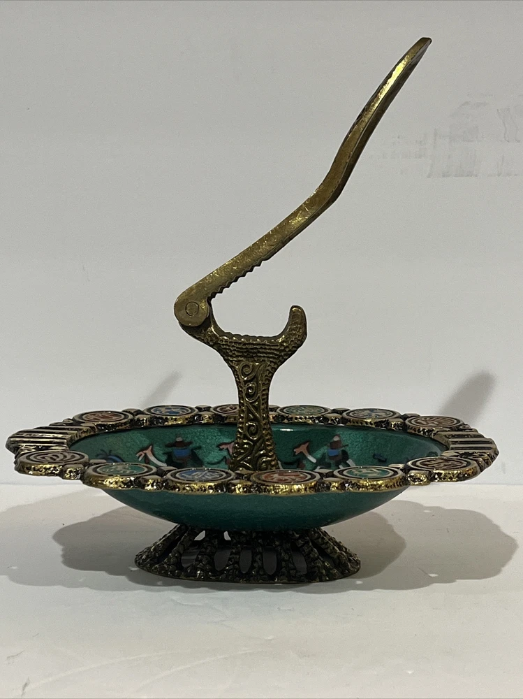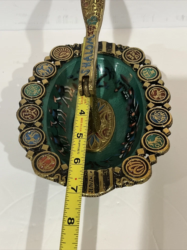 Vintage Israel Enamel Brass Bowl Nut Cracker With Zodiac Signs. Please see all the photos for the condition and the dimensions. This item is in great condition for its age. No chips or cracks. No repairs. The dimensions are about 7 X 5.5 X 4.5”. The work on the bowl is so amazing. There are zodiac signs on the rim as shown in the photos. This item is so beautiful. I have the same bowl in blue color in my selling list. Sold as is. Shipped with USPS Priority Mail. Fee free to ask me any questions anytime. I have a lot of rare vintage and antique items and electronics in my eBay store. Feel free to check my other items for sale. Happy bidding and thank you!
