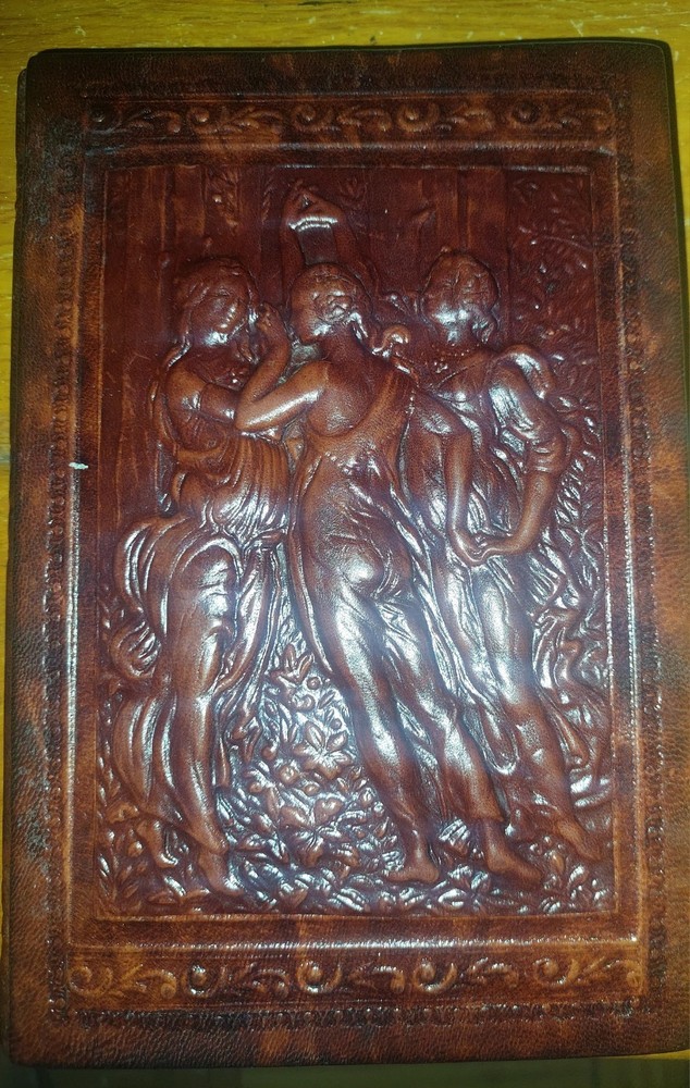 Vintage Italian Leather Bound Scrapbook Journal Three Graces Made In Italy