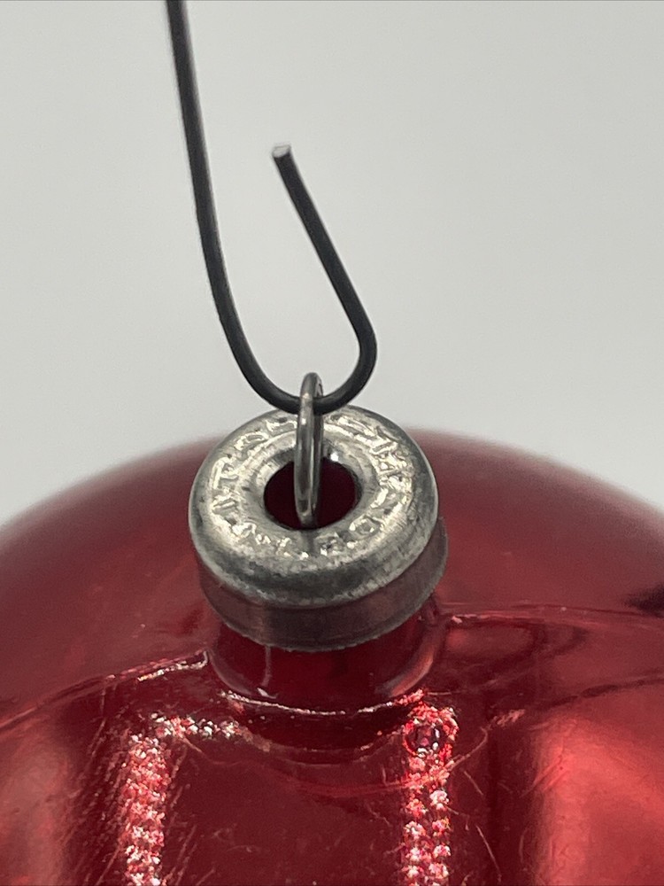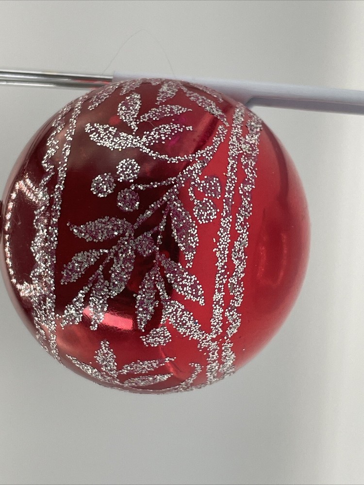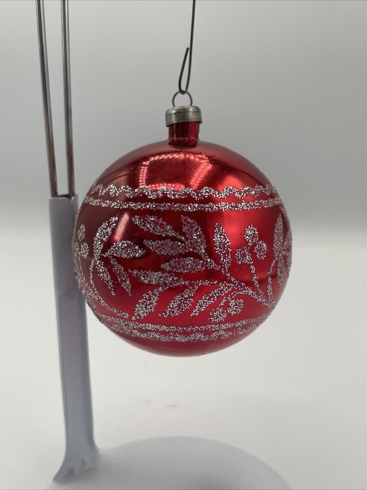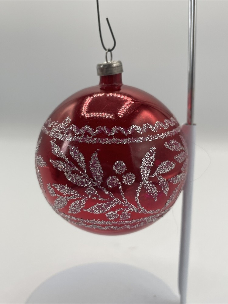 Vintage Italian Red Glass Stenciled Christmas Ornament