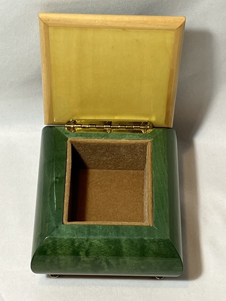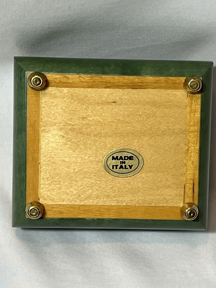 Material: Wood Department: Adults Shape: Rectangle Packaging: Box Time Period Manufactured: 1980-1989 Customized: No Occasion: All Occasions Collection: Keepsake Boxes Features: Boxed Care Instructions: Clean with Damp Cloth Handmade: Yes Color: Green Type: Jewelry Box Number in Pack: 1 Engraved: No Room: Any Room Style: Italian Original/Reproduction: Original