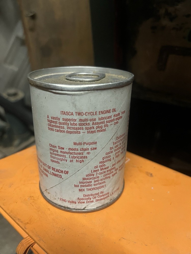 The Vintage Itasca 2 Cycle Oil is a rare find for collectors interested in gas and oil memorabilia. This unopened container showcases a piece of history from the Itasca brand, making it a unique addition to any collection focusing on vintage advertising items. Its untouched condition adds to its appeal for those seeking authentic pieces from the gas and oil industry.No rust , one minor dent on top rim of can (see photos )