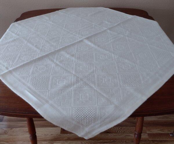 Vintage Woven European Damask Tablecloth Drawnwork Ivory Rayon Cotton 36" From a Florida estate, this is a lovely little vintage tablecloth made with what feels like a rayon, cotton blend, medium weight. The color is ivory. It has a geometric damask pattern with drawnthread squares.. Measurement is approximately 36 inches, square. It's in very good, vintage condition, there are no holes, frays or damage. It's clean and fresh and ready to be used.. I do have other vintage linens, fabric and jewelry on auction and am happy to combine shipping. See my other listings for more great items! Payment is expected within 7 days unless other arrangements have been made. All domestic orders will be shipped next day, Monday through Friday. International orders are shipped Monday, Wednesday and Friday. Other Items txzj pxzj28721 txzj-11 txzj85 txzj115