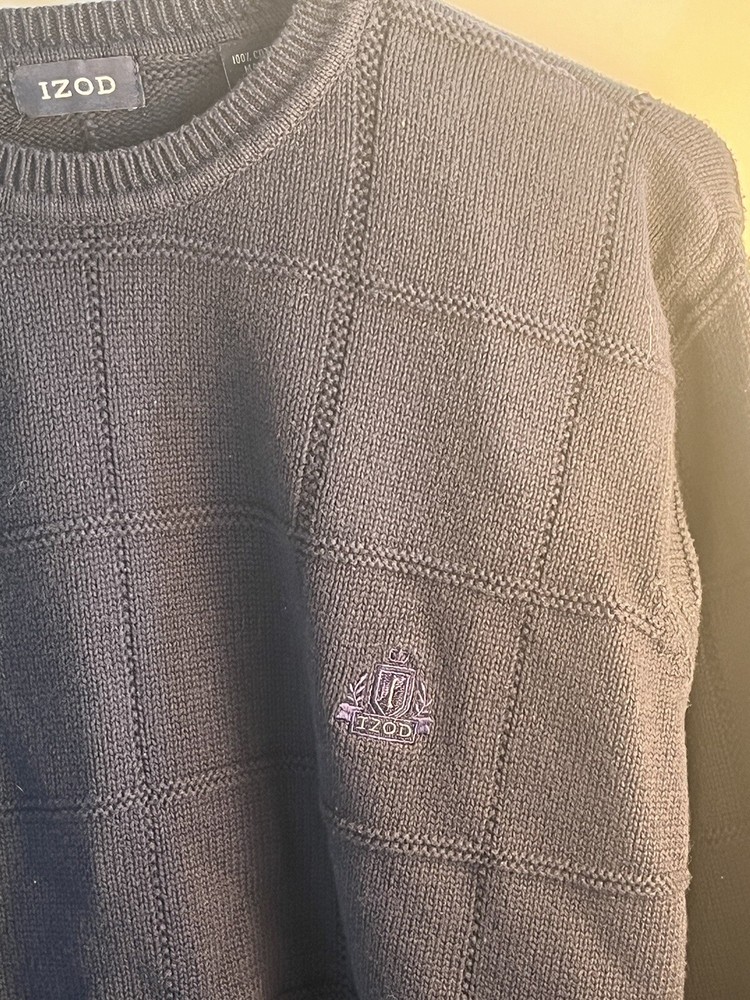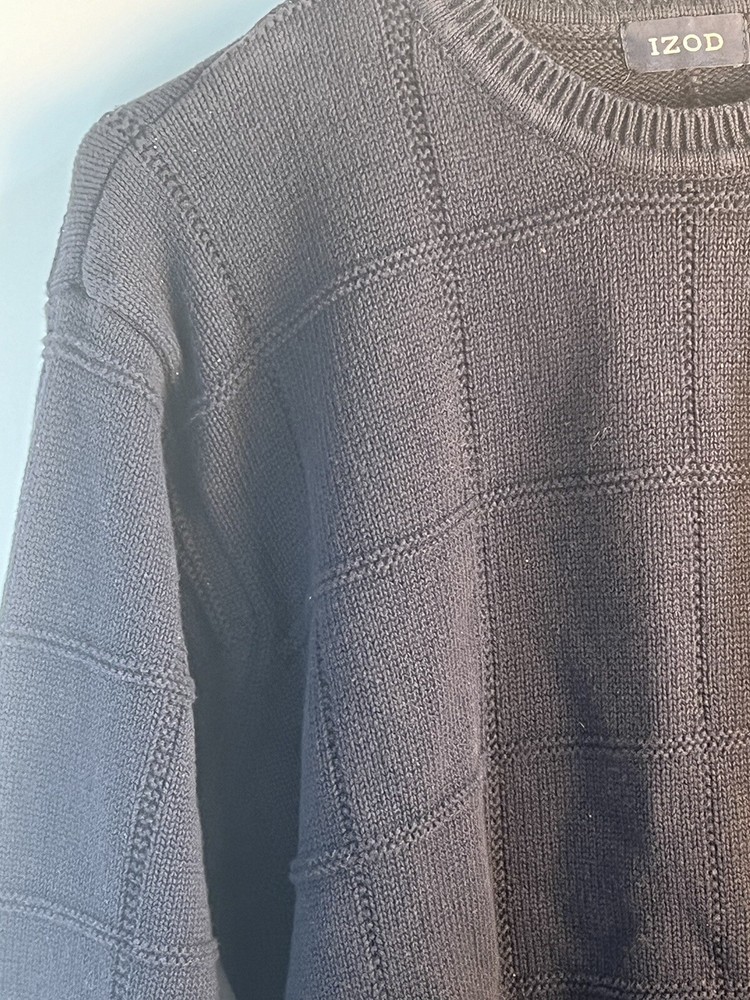 This vintage Izod cable-knit sweater is a must-have for any fashion-conscious man. The navy blue color and XL size make it a versatile addition to any wardrobe. The sweater's cotton material is both comfortable and durable, ensuring that it will last for years to come. With its classic pullover style and cable-knit design, this sweater is perfect for any occasion. Whether you're dressing up for a night out or keeping it casual, this sweater will provide you with a stylish and comfortable look. Don't miss out on the chance to add this vintage Izod cable-knit sweater to your wardrobe today.