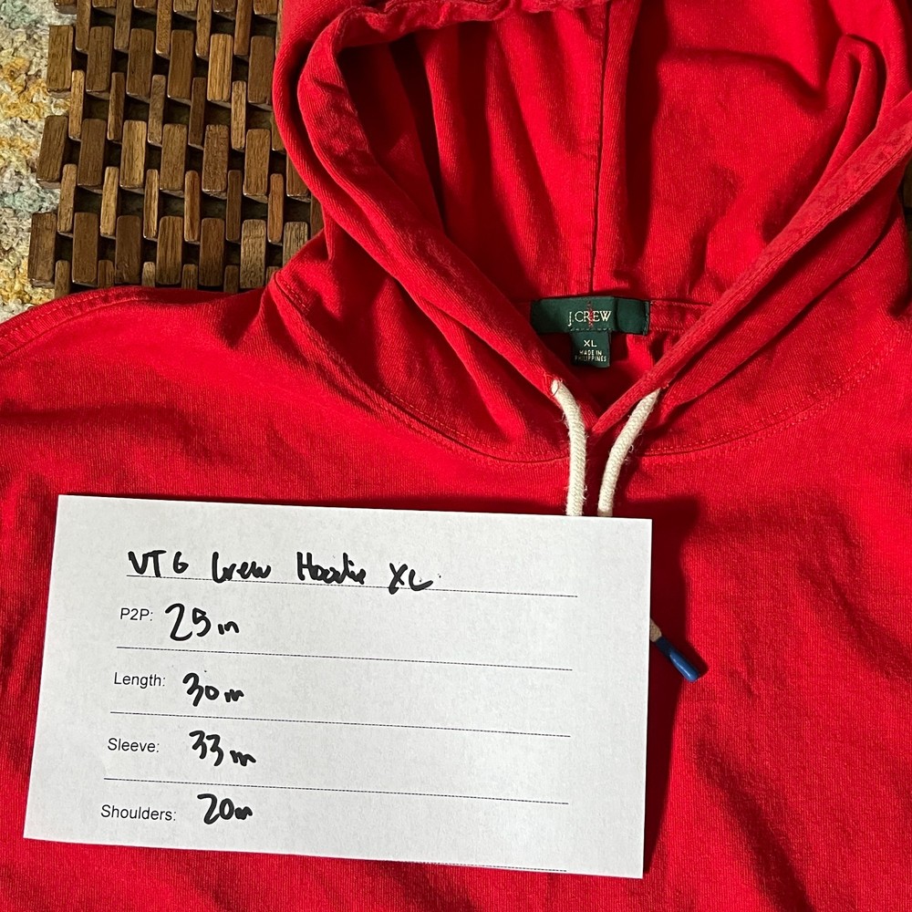 The Vintage J. CREW Pullover Hoodie in red is a stylish and comfortable option for men's activewear. Made from soft cotton fleece material, this hoodie features a classic crew neck and long sleeves, perfect for the winter, fall, and spring seasons. The pullover style with a hooded accent adds a touch of practicality to the garment, making it ideal for walking activities. Machine washable and in a size XL, this hoodie from the reputable brand J.CREW is a timeless addition to any man's wardrobe.