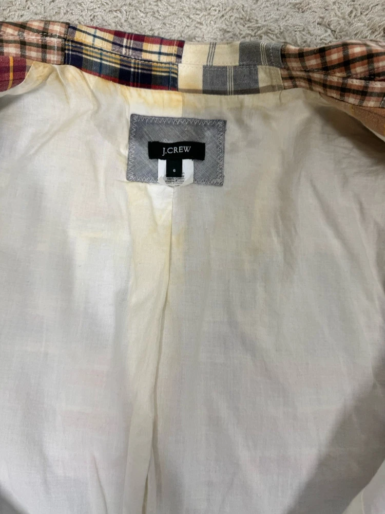 Blazer is a classic and in good condition however it needs dry cleaned. In the photos you can see the lining has some yellowing. No odors or other flaws Fast ship