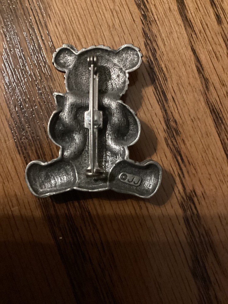 This vintage JJ Jonette Jewelry pin features a design of a bear holding a teddy bear. Crafted by Jonette Jewelry, known for their unique and whimsical designs, this pin is a charming piece of retro jewelry. The playful motif of the bear with a teddy bear adds a nostalgic touch to any outfit and makes a delightful addition to any vintage jewelry collection.