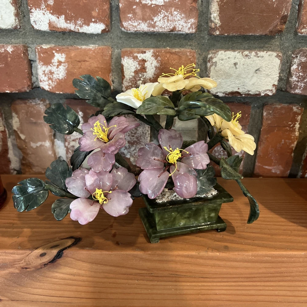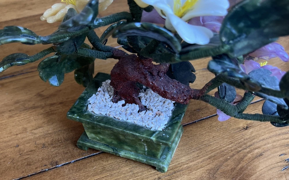 $ 14.79Vintage Chinese Gemstone Bonsai Tree – Multicolor Flowers in Ornate Carved Pot