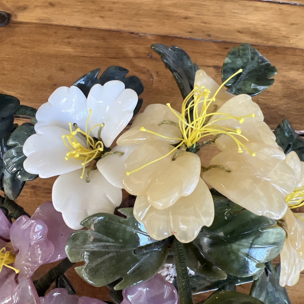 Beautiful Jade Rose quartz and Calcite Bonsai Tree in good vintage condition. The jade tree is a symbol of prosperity and good luck.