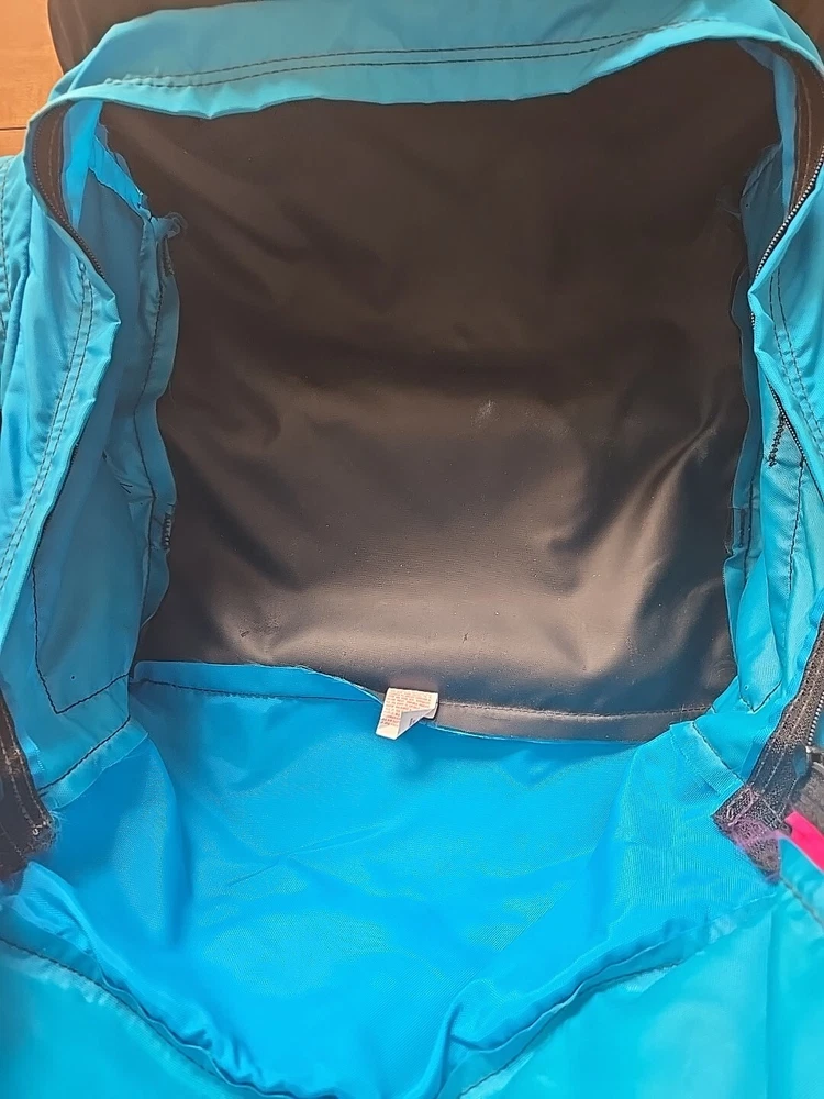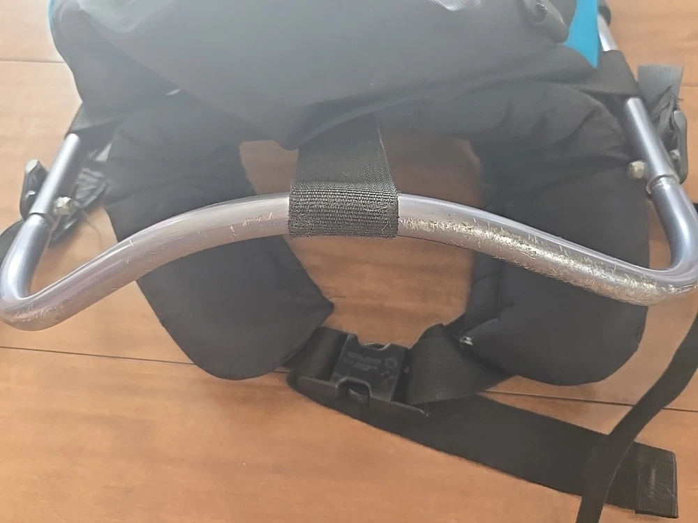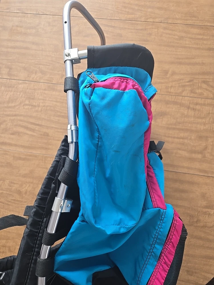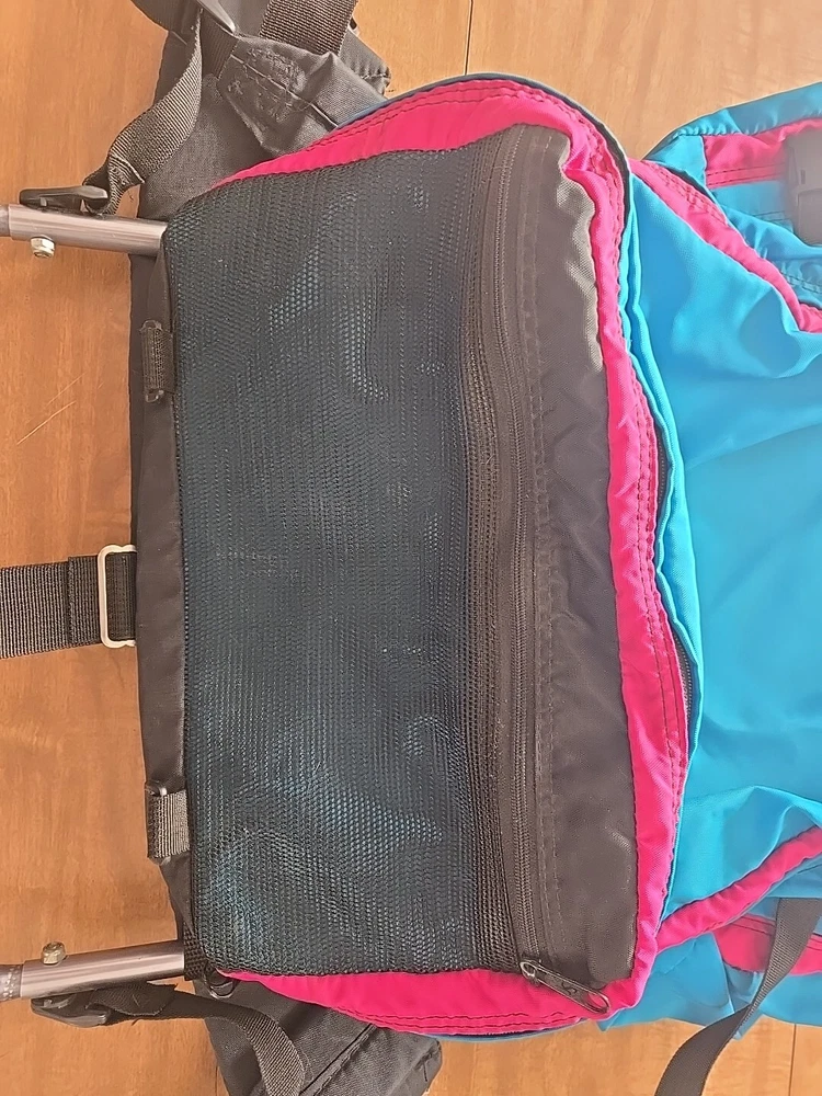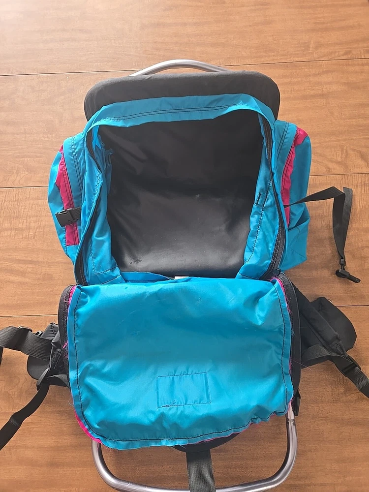 Used in acceptable condition. Bag has some stains/marks in a few locations. The aluminum fram has a fair amount of scuffs. All zippers and clips function properly. Please check pictures for full item condition.