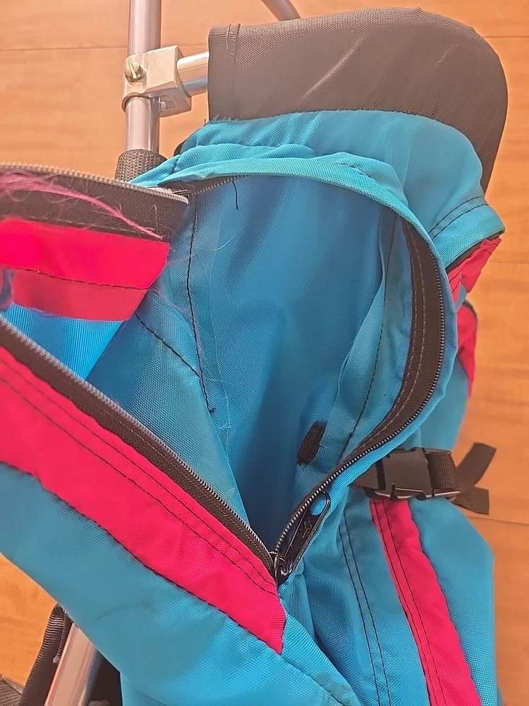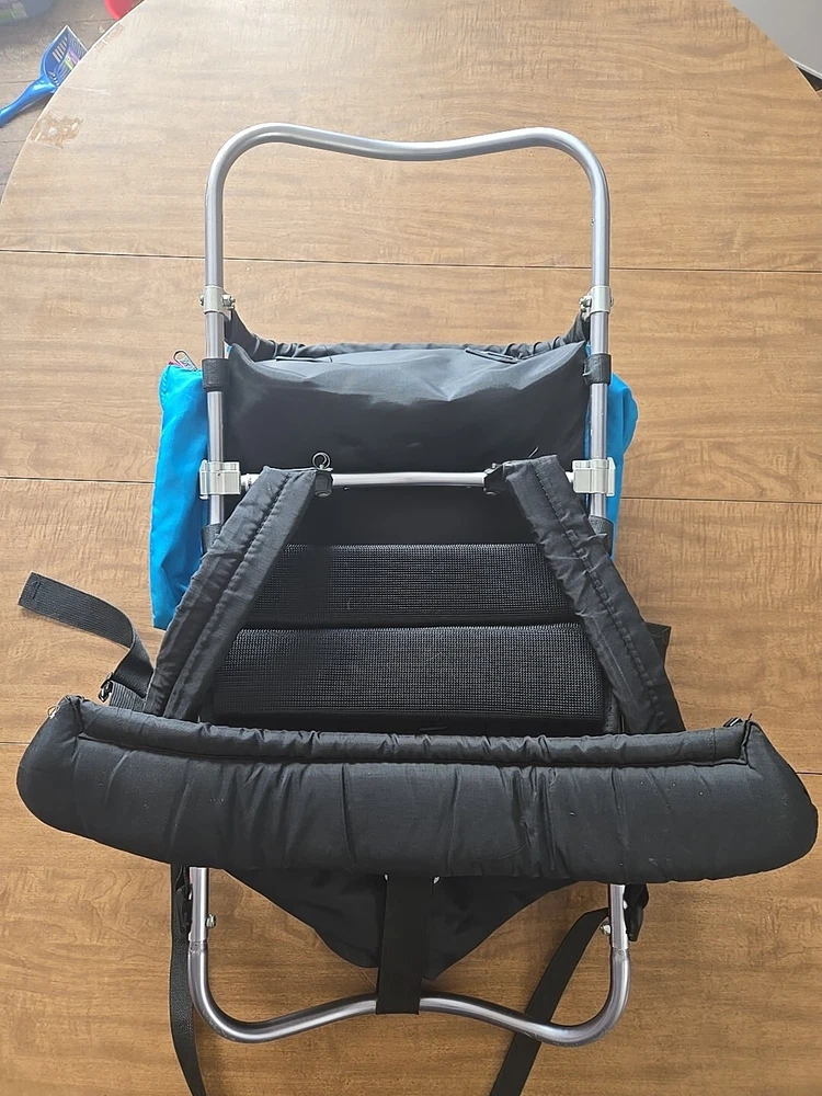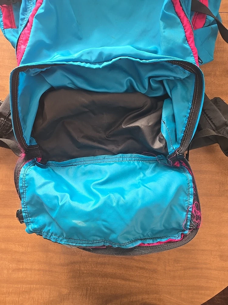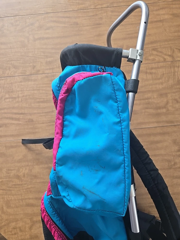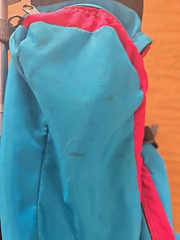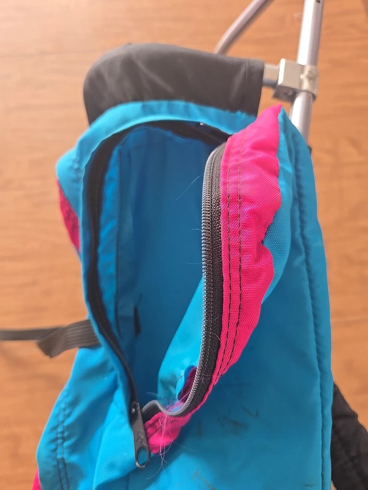 Used in acceptable condition. Bag has some stains/marks in a few locations. The aluminum fram has a fair amount of scuffs. All zippers and clips function properly. Please check pictures for full item condition.
