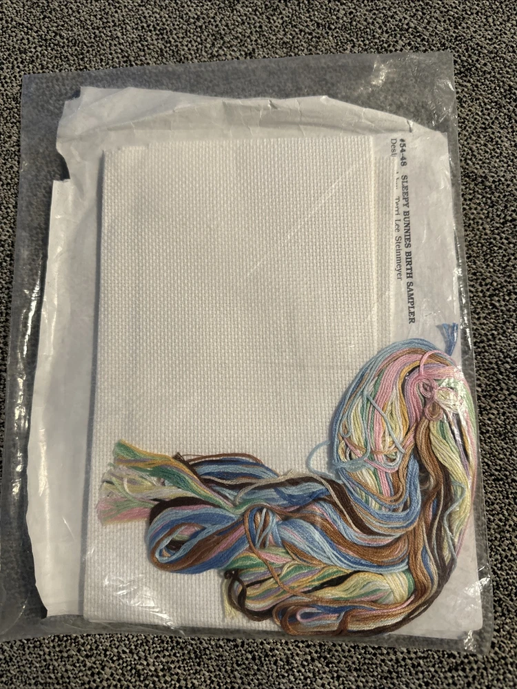 The Vintage Janlynn Sleepy Bunnies Birth Sampler Counted Cross Stitch Kit is a collectible sewing kit from 1998. This kit features a design of sleepy bunnies and is an original vintage piece. Perfect for cross stitch enthusiasts, this kit allows you to create a birth sampler with a charming bunny theme. It is a unique and nostalgic piece for anyone interested in vintage sewing items.