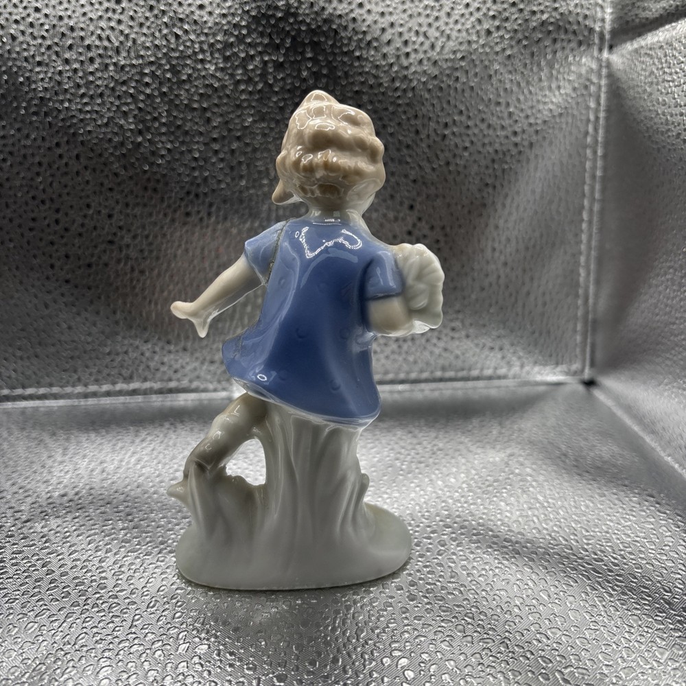 Vintage Japanese Logo Girl Figurine Holding Flower Bouquet 4.5 Inch Porcelain Collectible