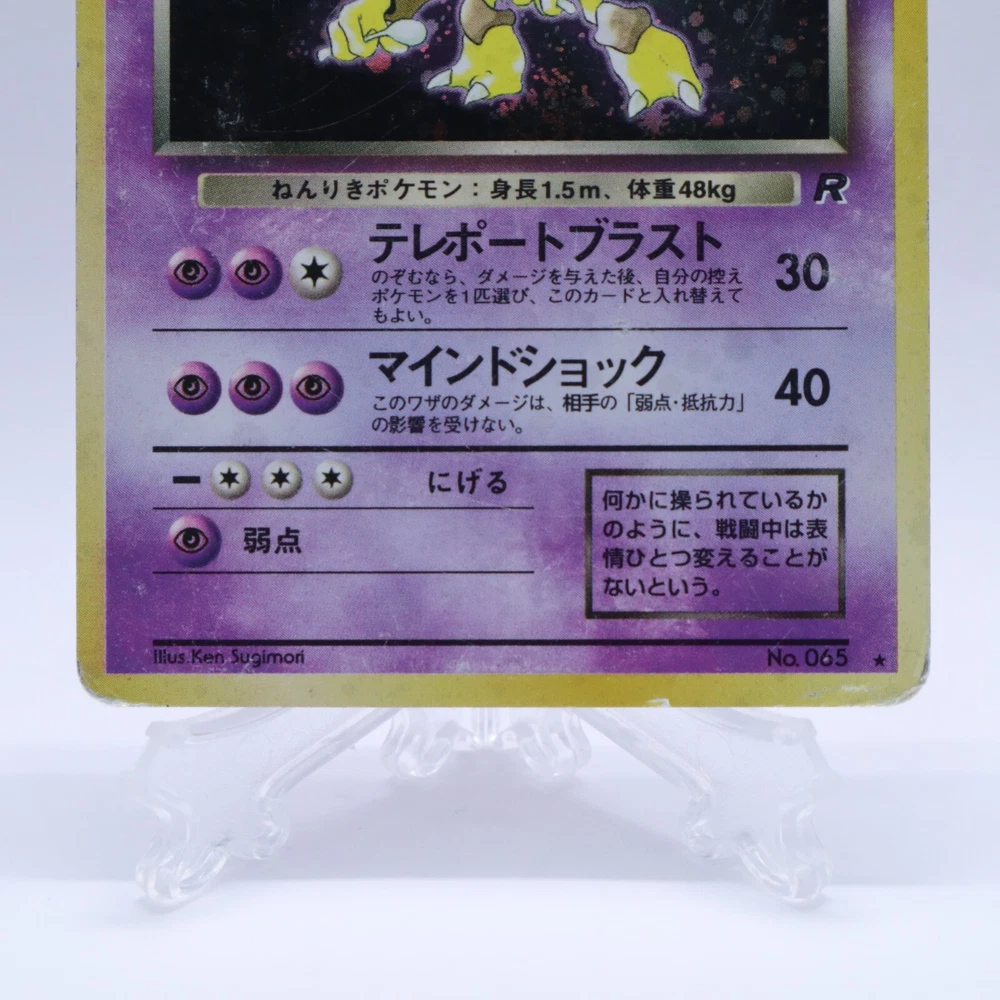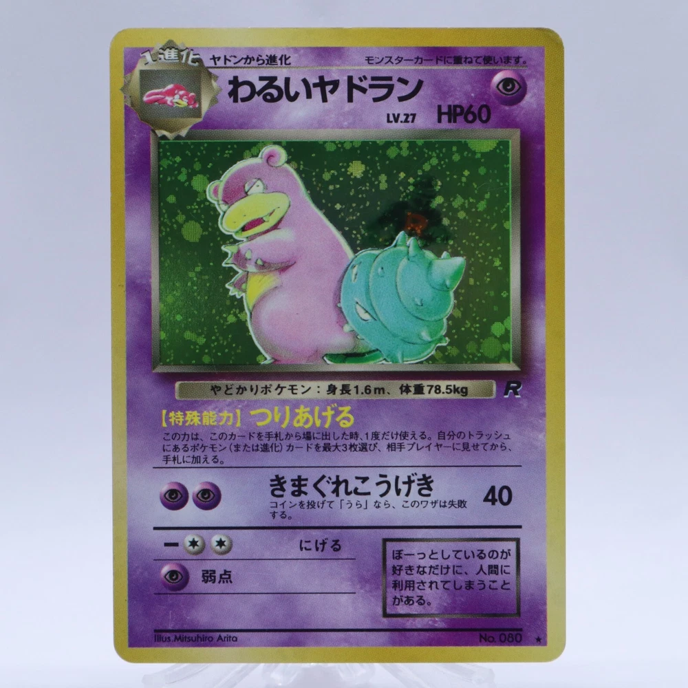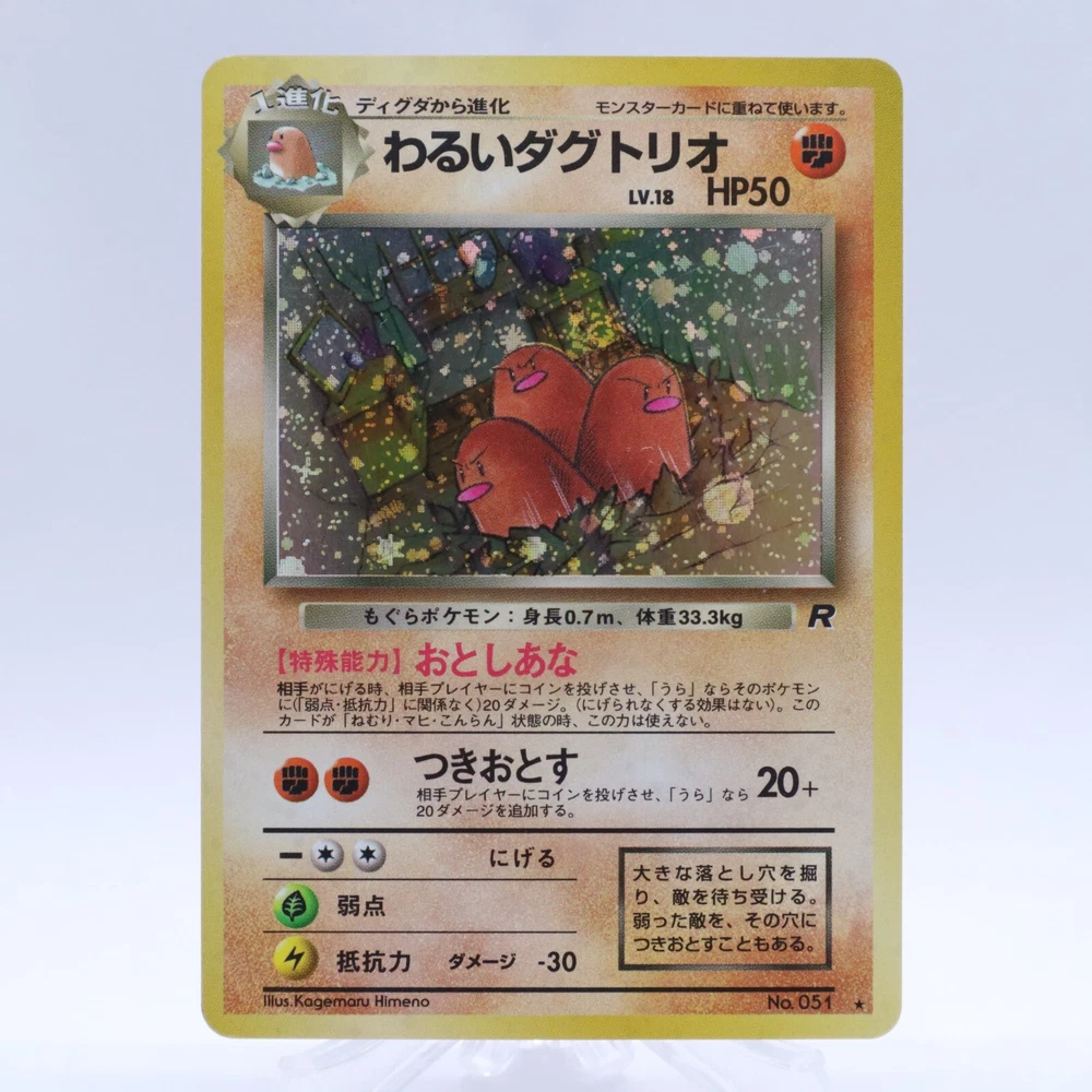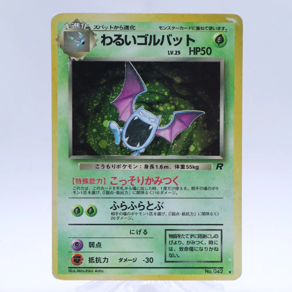 Attribute/MTG:Color: Dark, Multi-Color Number of Cards: 6 Card Number: 094 Age Level: 4+ Game: Pokémon TCG Material: Paper Vintage: Yes Card Condition: Heavily Played (Poor) Country/Region of Manufacture: Japan Year Manufactured: 1997 Illustrator: Aya Kusube Set: Team Rocket Card Name: Dark Gengar Features: Holo Card Size: Japanese Language: Japanese Character: Alakazam, Dugtrio, Gengar, Golbat, Slowbro Finish: Holo Autographed: No Manufacturer: Nintendo Card Type: Pokémon