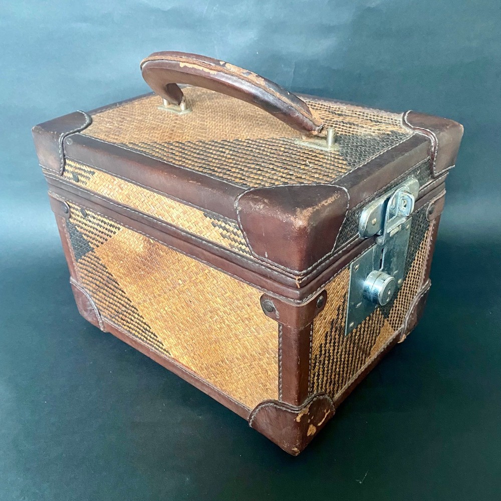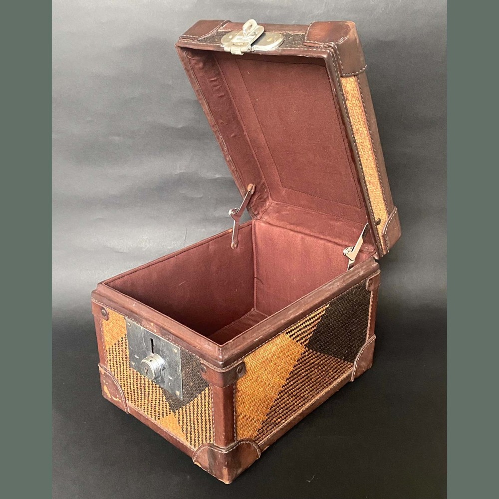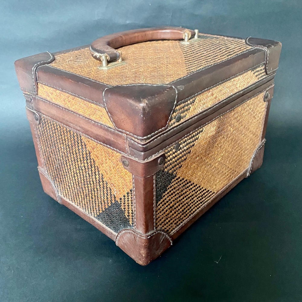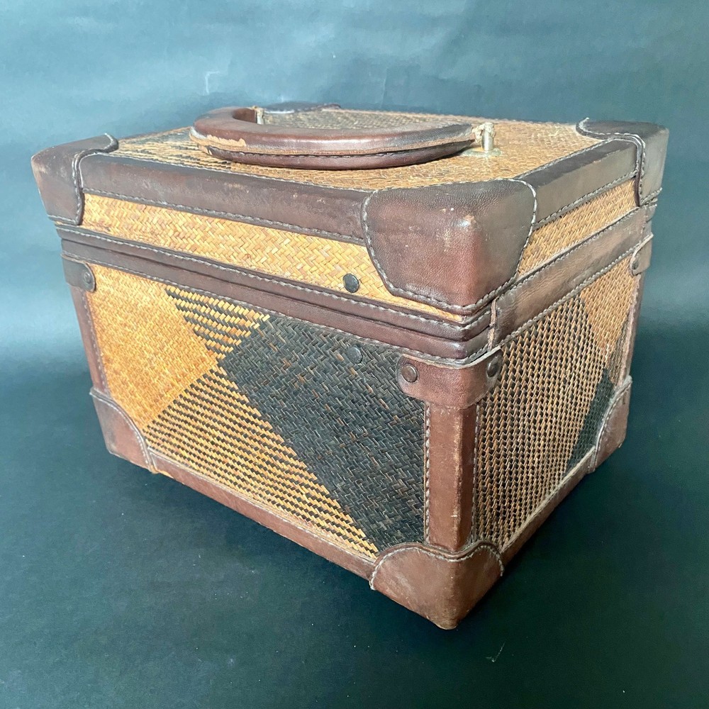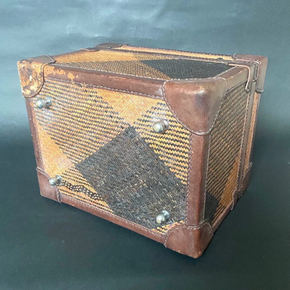 Vintage Javanese Woven Rattan & Leather Jewellery Storage Travel Box Region: Java Indonesia 25cm x 30cm x 25cm Can be used as a jewelry box or as a decorative box on a coffee table or shelf.