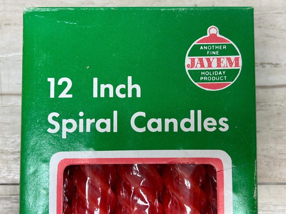 Vtg Jayem Twisted Spiral 12" Holiday Red Candles Smokeless Dripless 10Pc Box.Never used-in original package.Some may not be perfectly straight from age