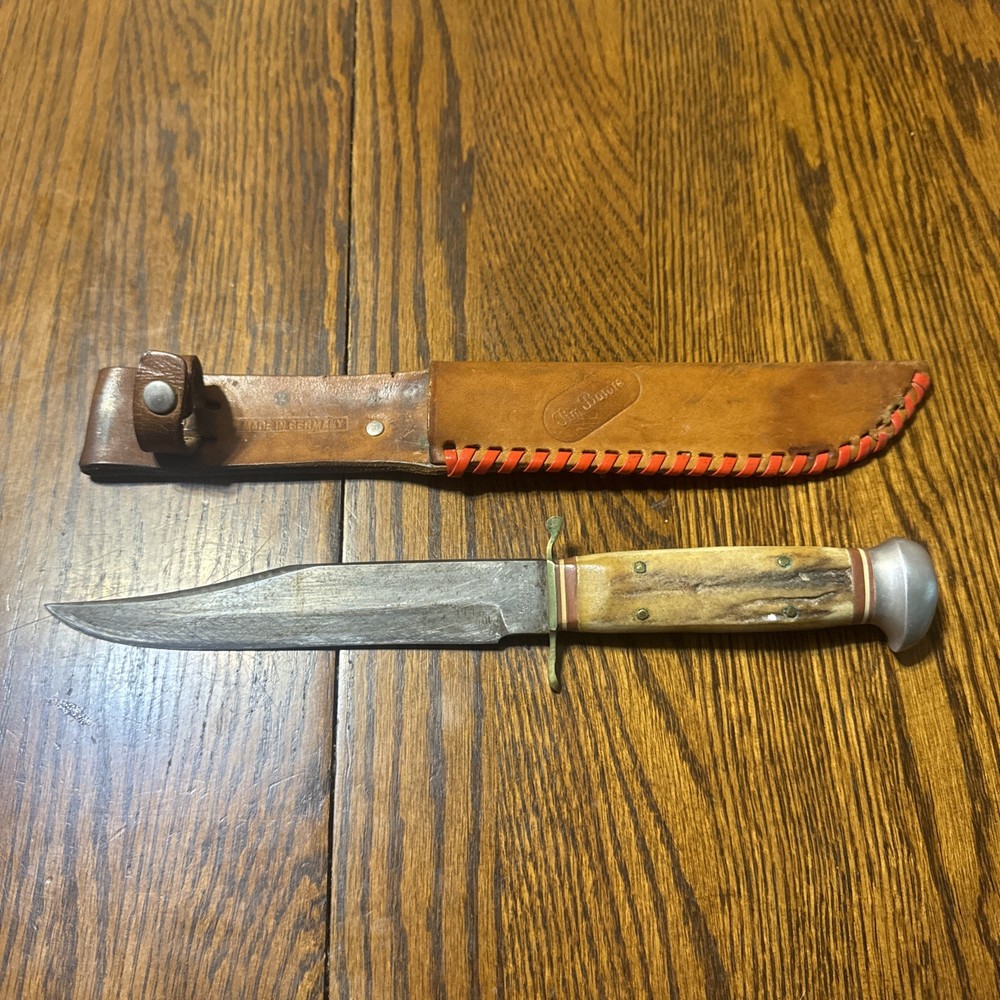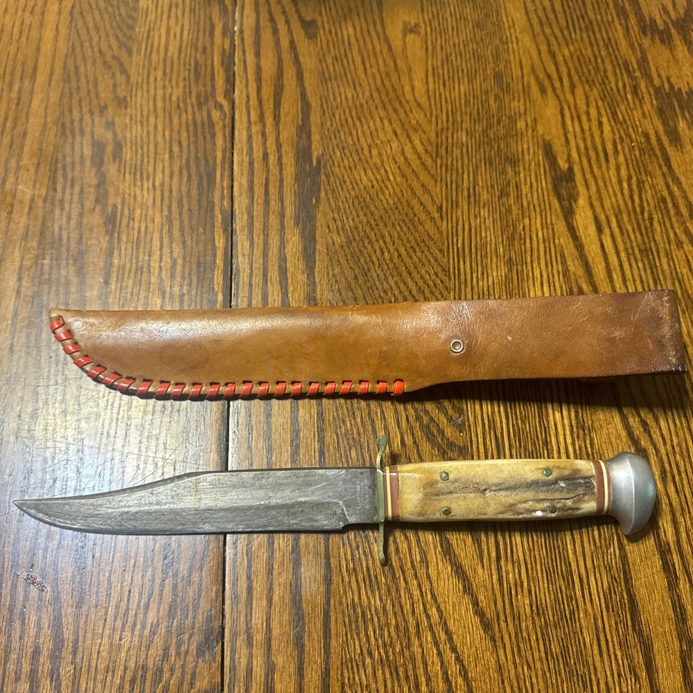 $ 35.114-inch Full-Tang Bowie Hunting Knife with Wood Handle and Sheath