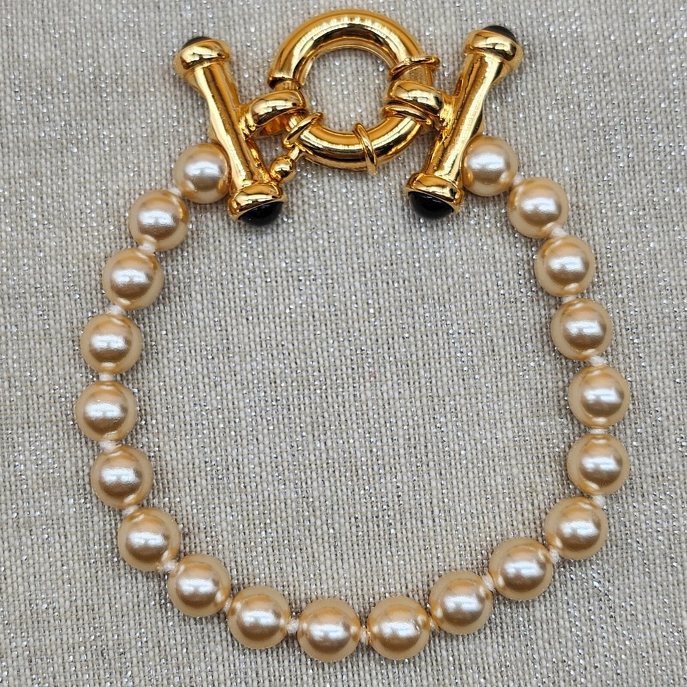 This stunning vintage Joan Rivers bracelet is a true gem! The faux pearls and gold-tone closure give it an elegant, timeless look. It's in excellent condition with just slight wear, adding to its charm. The seller is super accommodating with combined shipping—just reach out. Returns are accepted if notified quickly, making buying worry-free. A must-have for any vintage jewelry lover!