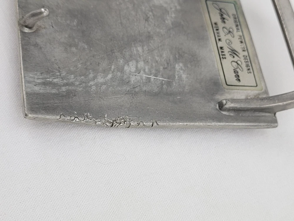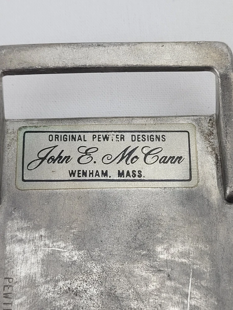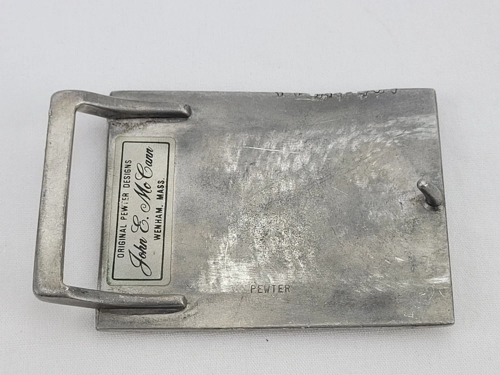 Vintage John E McCann Pewter Eagle Belt Buckle - BB1 This belt buckle is approximately 8 cm x 6 cm. A 1.75" wide belt should fit this buckle.