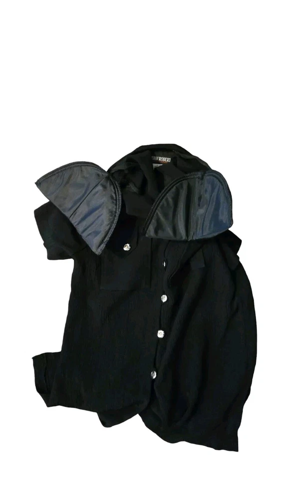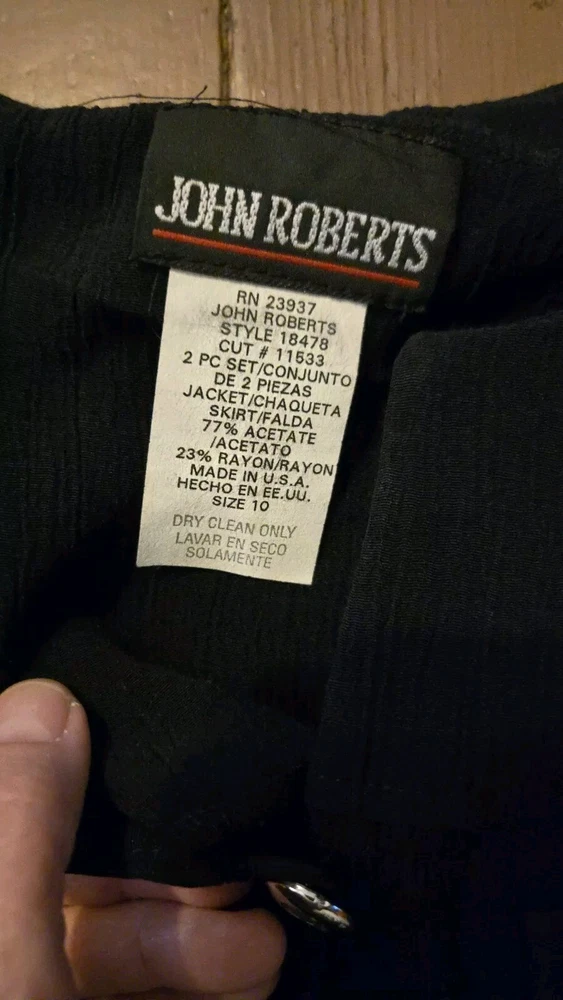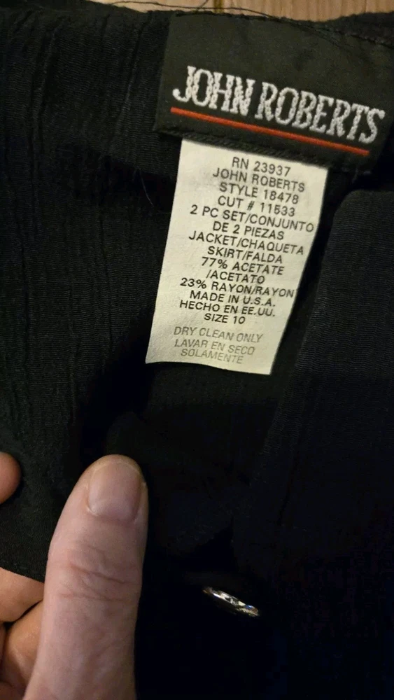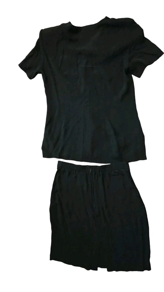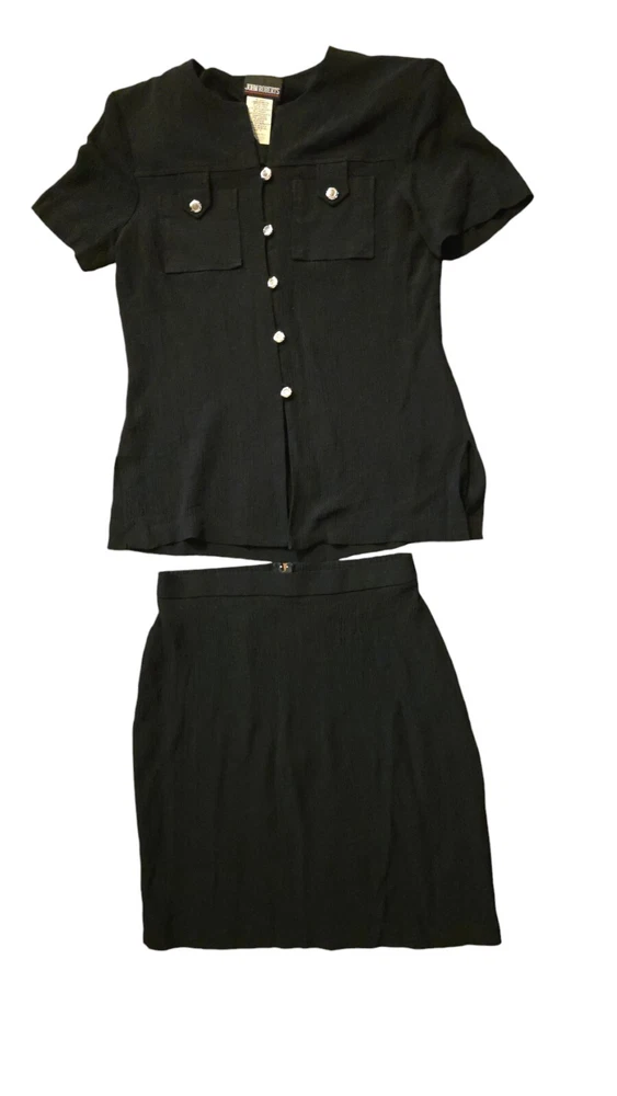 Material: acetate, Rayon Color: Black Brand: John Roberts Pattern: Solid Occasion: Business Style: military Fabric Type: Knit Type: Set Department: Women Size: 10 Skirt Length: Knee Length Size Type: Regular Theme: 80s