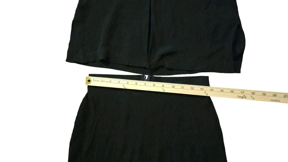 Vintage 80's John Roberts Shoulder Pads Black Skirt Set Paper Tags Non Iron Liquid Knit Size 10 77% Acetate 23% Rayon Made In USA
