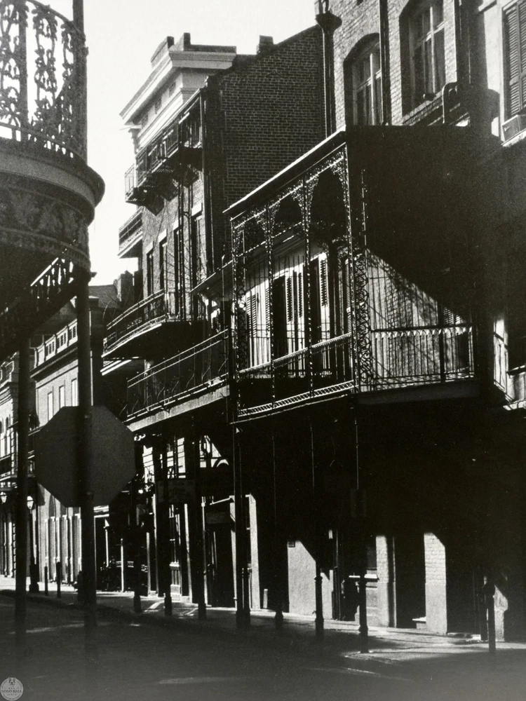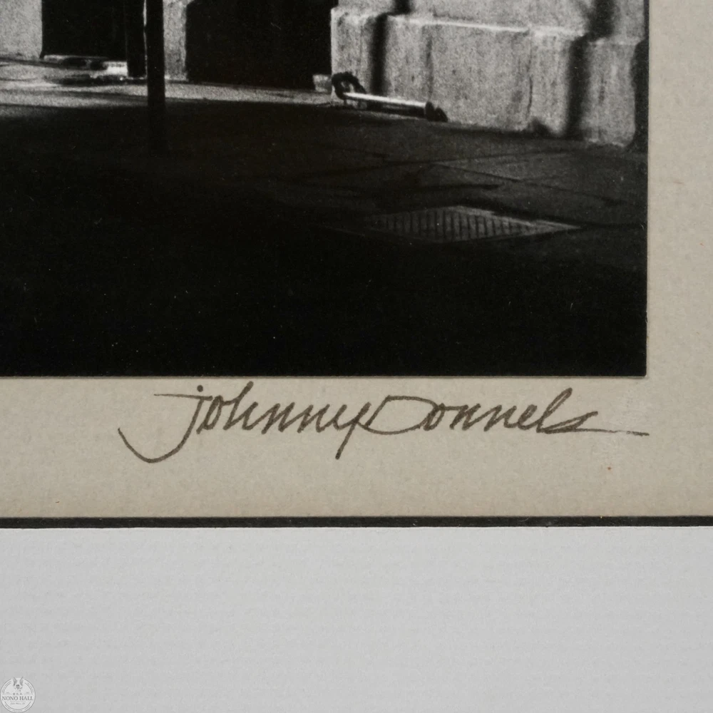 The Vintage Framed Original Gelatin Silver Photographic Print "Tennessee Williams' Studio", Signed in Graphite By Photographer Johnny Donnels ( American, 1924-2009 ) in Lower Right. It Captures the Quiet Architectural Poetry of New Orleans' French Quarter in the Immediate Postwar Year. Identified By the Artist As "Tennessee Williams' Studio", the Image Documents the Atmospheric Streetscape Associated with the Early Creative Life of the Celebrated American Playwright. Donnel's Refined Composition Highlights Wrought Iron Balconies, Layered Facades, and Dramatic Shadows Stretching Across the Street. The Absence of Figures Enhances the Contemplative Mood, Allowing Architectural Rhythm and Light to Define the Scene. Rich Tonal Contrast and Subtle Gradations are Characteristic of Period Silver Printing and Underscore the Photographic Print's Mid Century Sensibility. The Photographic Print Shows Minor Toning, and Wear on the Frame Consistent with Age, In Good Condition. Title: "Tennessee Williams' Studio" Artist: Johnny Donnels ( American, 1924-2009 ) Time Period: 1980s Medium: Gelatin Silver Photographic Print Condition: Good Condition Frame Size: 21" By 17" Sight Size: 13" By 9-3/4" Available For Domestic Shipping and International Shipping. Thanks!